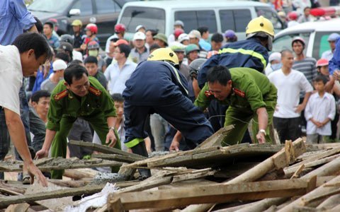 Mọi người hoảng loạn chạy đến thì một cảnh tượng kinh hoàng, toàn bộ giàn giáo của khu sảnh cùng với một cột trụ đã đổ ập xuống. Lẫn trong tiếng người í ới gọi lực lượng cứu hộ là những tiếng kêu cứu thất thanh, những cánh tay vẫy vùng của các nạn nhân.