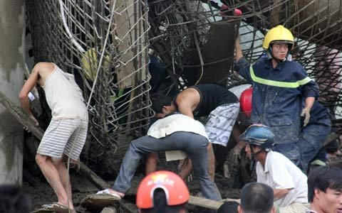 Không ai bảo ai, những người công nhân làm ở các công trình gần đấy, những người dân đi đường và lực lượng bảo vệ các công trình đã lao đến để cứu các nạn nhân.