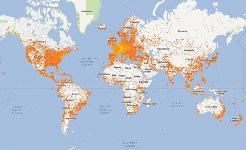 | Bản đồ nơi có các Couch Surfing trên toàn thế giới |