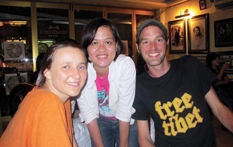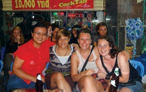 | Từ trái qua) Người viết và các Couch Surfer: Abby (Mỹ), Kiki (Đan Mạch), Marit (Na Uy). Abby hiện đang làm giáo viên tình nguyện tại Philippines, còn Kiki và Marit đang học một khóa ngắn về văn hóa và kinh tế tại Hội An, Việt Nam |