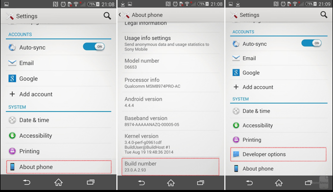 Vào Cài đặt (Settings) > Thông tin điện thoại (About phone) > chạm vào phần Số hiệu bản tạo (Build Number) 7 lần. Bạn sẽ nhận được một thông báo thành công và giờ bạn trở thành một nhà phát triển.