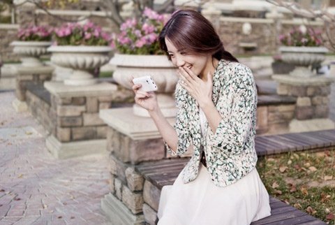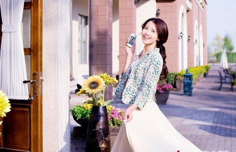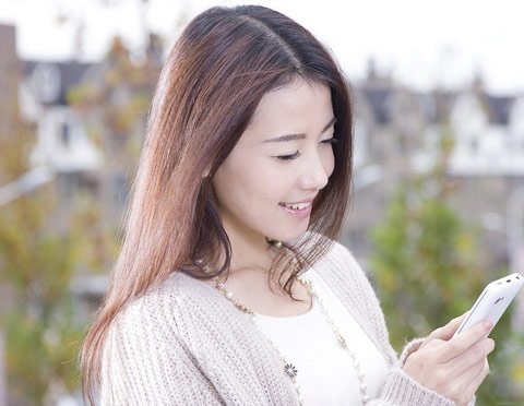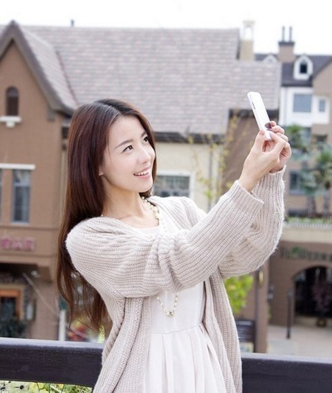 Ngắm bóng hồng xinh đẹp bên chiếc smartphone bạch tuyết.