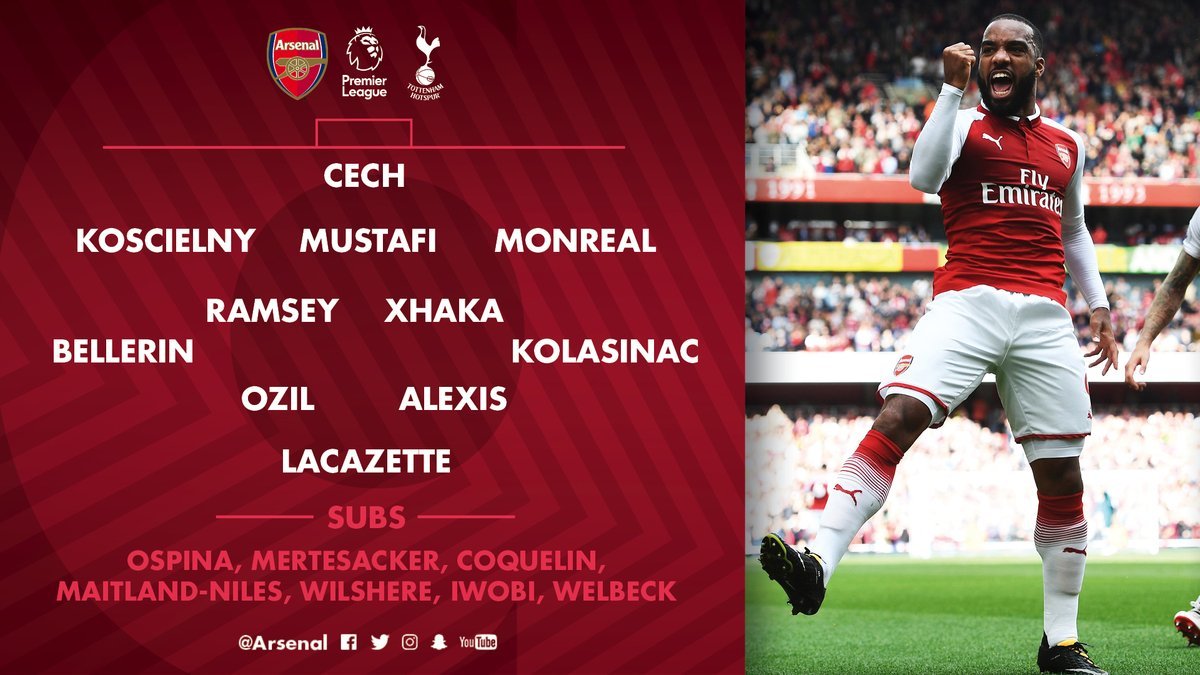 Arsenal (3-4-2-1): Cech; Koscielny, Mustafi, Monreal; Bellerin, Ramsey, Xhaka, Kolasinac; Ozil (Iwobi 84), A. Sanchez; Lacazette (Coquelin 73).