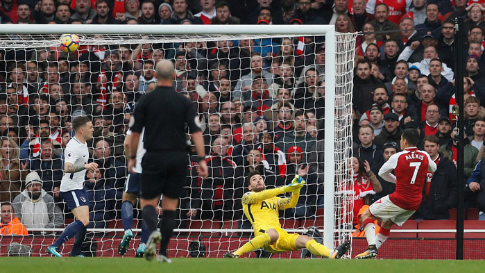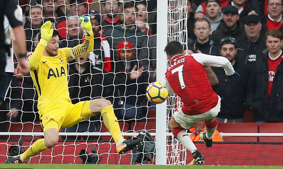 Alexis Sanchez băng xuống thần tốc loại bỏ Davison Sanchez nhưng cú sút lại không đánh bại được Lloris.
