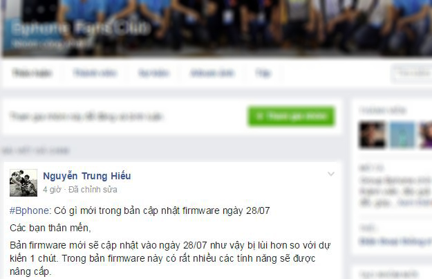 Trong status mới nhất trên fanpage của Hội những người yêu thích Bphone đăng vào sáng nay, admin của trang này và cũng là một nhân viên của Bkav – anh Trần Trung Hiếu chia sẻ và xác nhận, bản firmware dành cho Bphone vừa được tung ra vào hôm nay (28/07/2015) có rất nhiều các tính năng được nâng cấp, phần lớn những cải tiến này đều dựa theo các nhận xét và góp ý của người dùng.