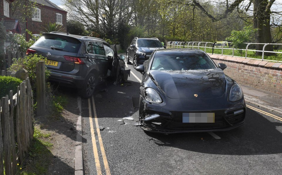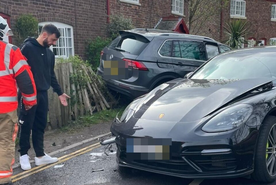 Những bức ảnh chụp từ hiện trường cho thấy, chiếc Porsche Panamera trị giá 94.000 bảng của Bruno Fernandes bị vỡ nát phần đầu bên lái.