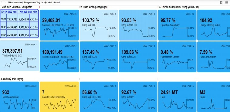 Ngoài ra, BSR còn đẩy mạnh khai thác và cải tiến các hệ thống quản lý sản xuất, bảo dưỡng hiện hữu theo định hướng thông minh và tích hợp; tự phát triển và xây dựng hàng loạt hệ thống như: hệ thống báo cáo quản trị trực quan (visualization) công tác sản xuất, bảo dưỡng, thương mại, nhân sự, công việc theo thời gian thực (realtime); hệ thống khai báo và kiểm soát dịch bệnh Covid cho CBCNV và nhà thầu, đối tác, khách hàng.