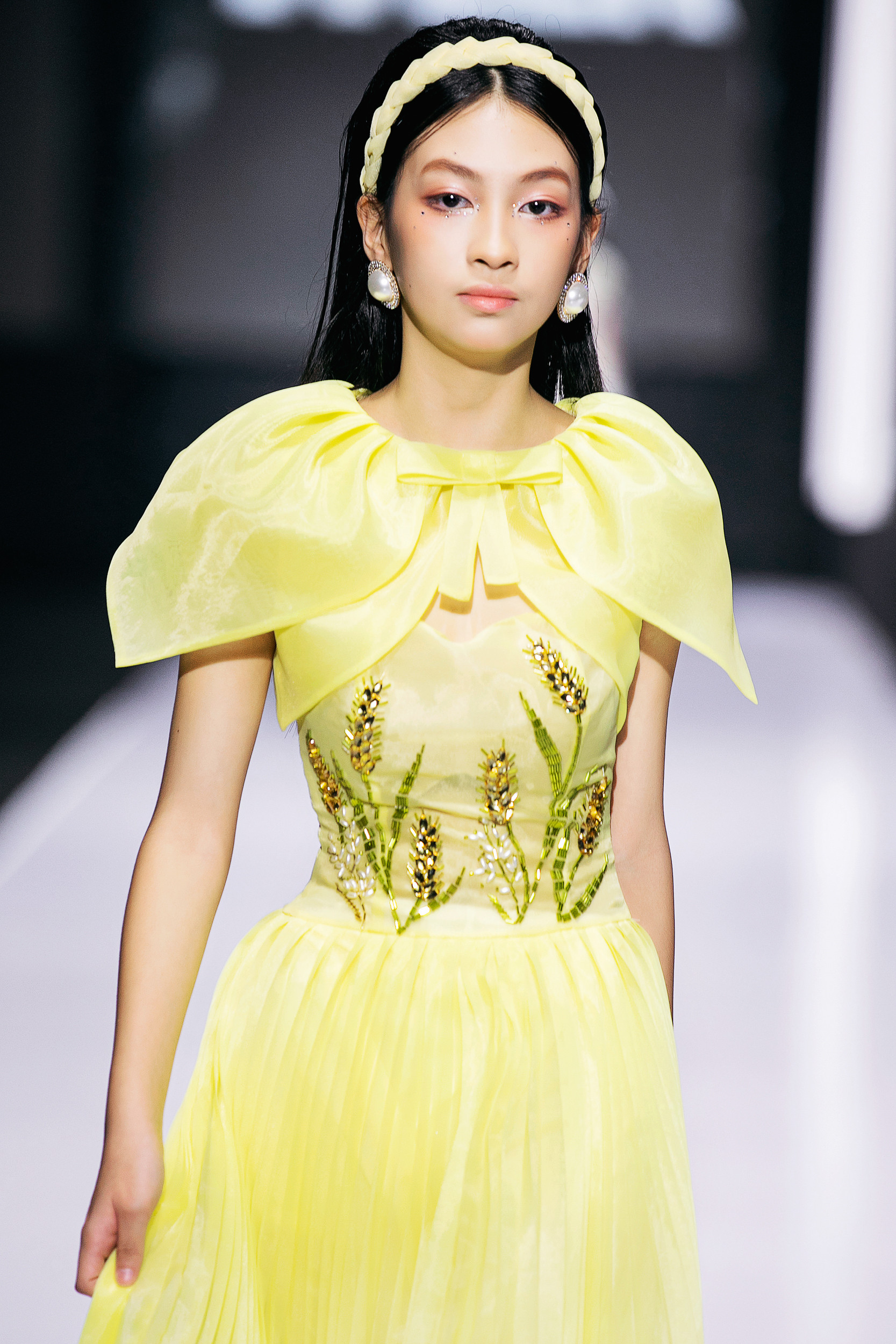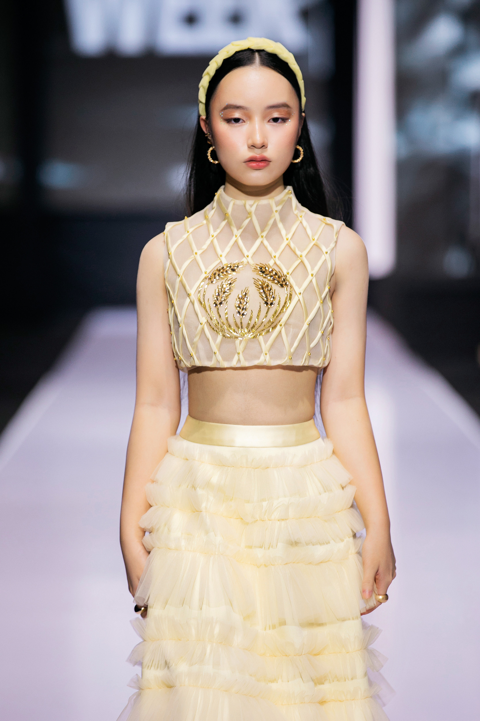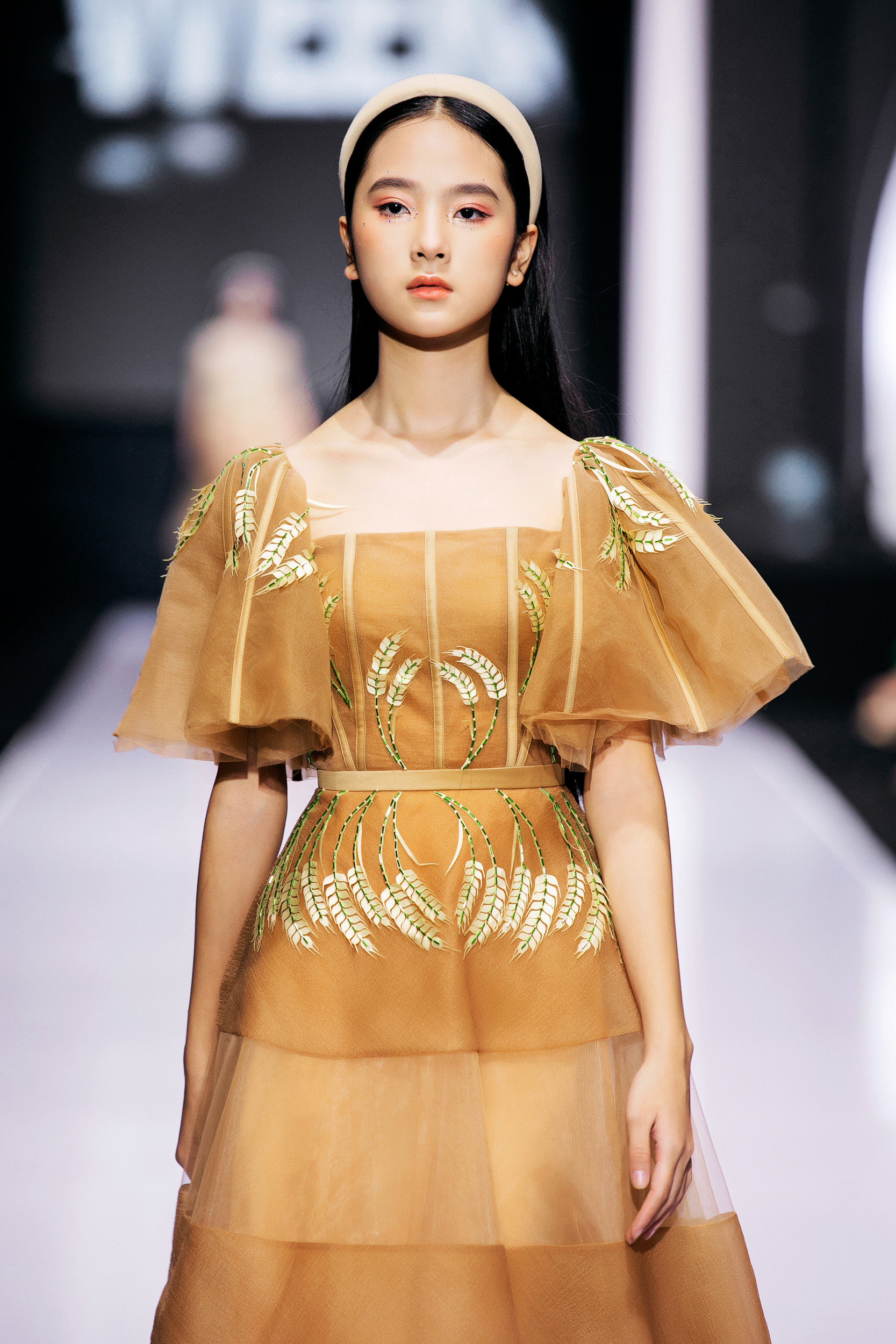Hình ảnh những thảm lúa uốn lượn như những con sóng khi có làn gió bất chợt thổi qua chính là nguồn cảm hứng đặc biệt cho BST lần này. Thông qua hình ảnh cây lúa, NTK Thảo Nguyễn mong muốn truyền tải nét đẹp thiên nhiên của con người Việt Nam qua từng bộ trang phục.