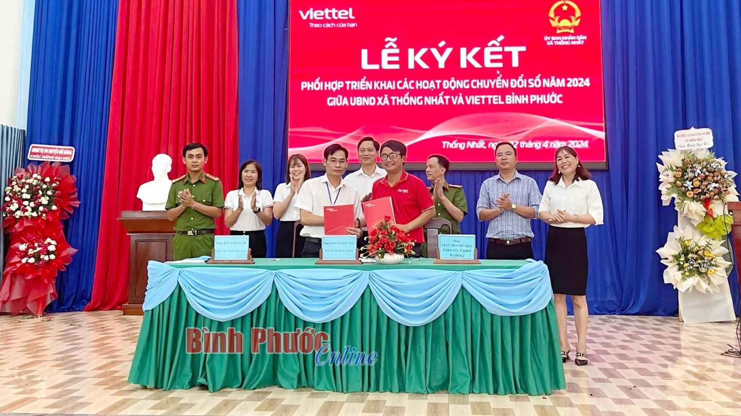 Chi nhánh Viettel Bù Đăng ký kết với các xã, thị trấn trong huyện về phối hợp triển khai thực hiện CĐS trên địa bàn.