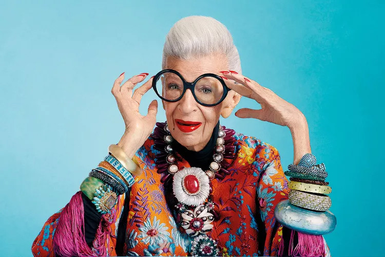 Iris Apfel sinh ngày 29/8/1921 ở New York (Mỹ). Bà là doanh nhân, nhà thiết kế và biểu tượng thời trang người Mỹ. Bà cùng chồng lập công ty dệt may, làm trong lĩnh vực thiết kế nội thất, phục chế cho nhiều đời Tổng thống Mỹ.