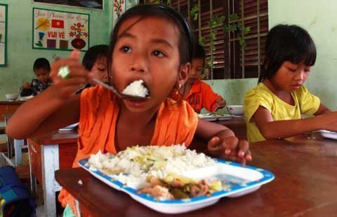 Bà Hoàng Thị Lý - phó GĐ Sở GD-ĐT tỉnh Khánh Hòa, cho biết, chương trình cho học sinh miền núi ăn trưa, bán trú tại trường đối với trẻ học 2 buổi/ngày được thực hiện từ đầu tháng 11. Những năm trước mỗi học sinh tiểu học đến lớp sẽ được nhận học bổng 90.000/tháng. Năm nay, số tiền này được nâng lên thành 200.000 đồng/tháng nhưng chuyển thành buổi ăn trưa.