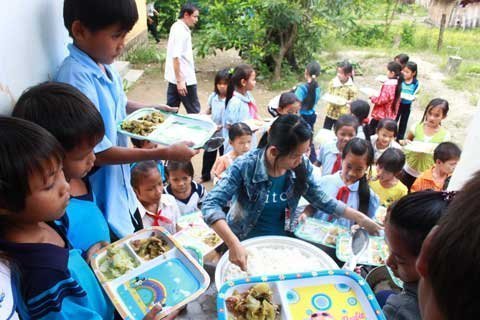 | Học sinh miền núi Khánh Hòa hào hứng với bữa trưa tại trường |