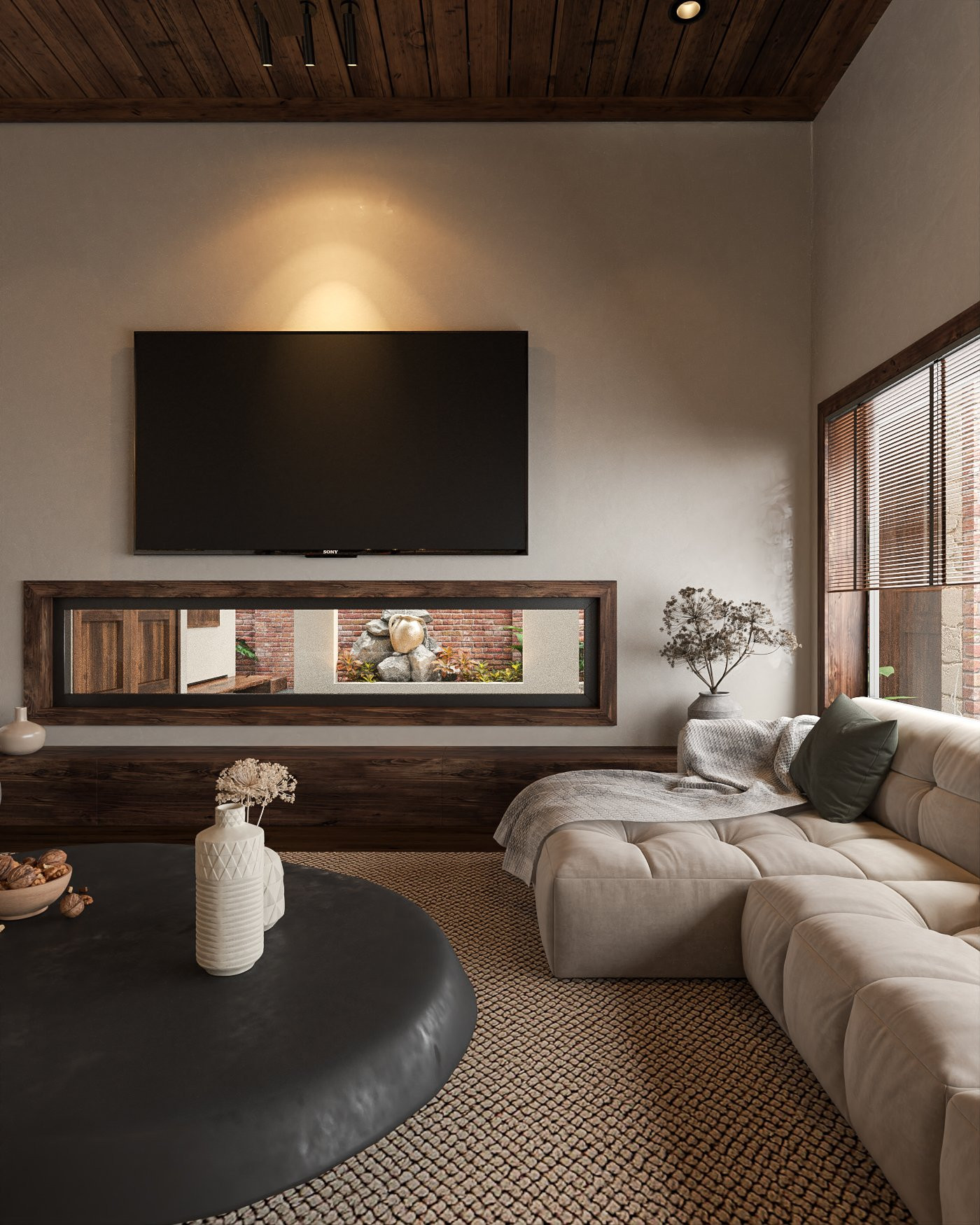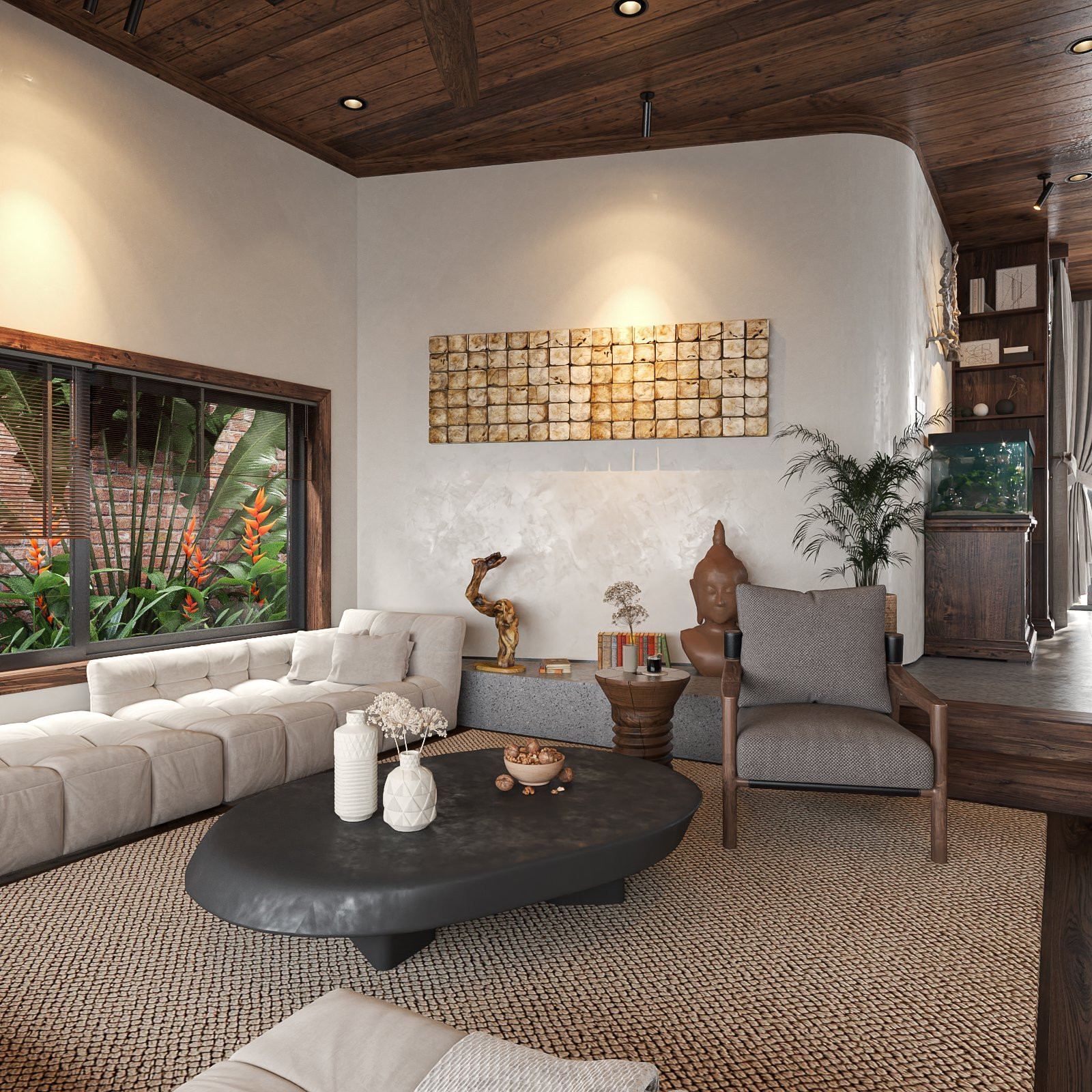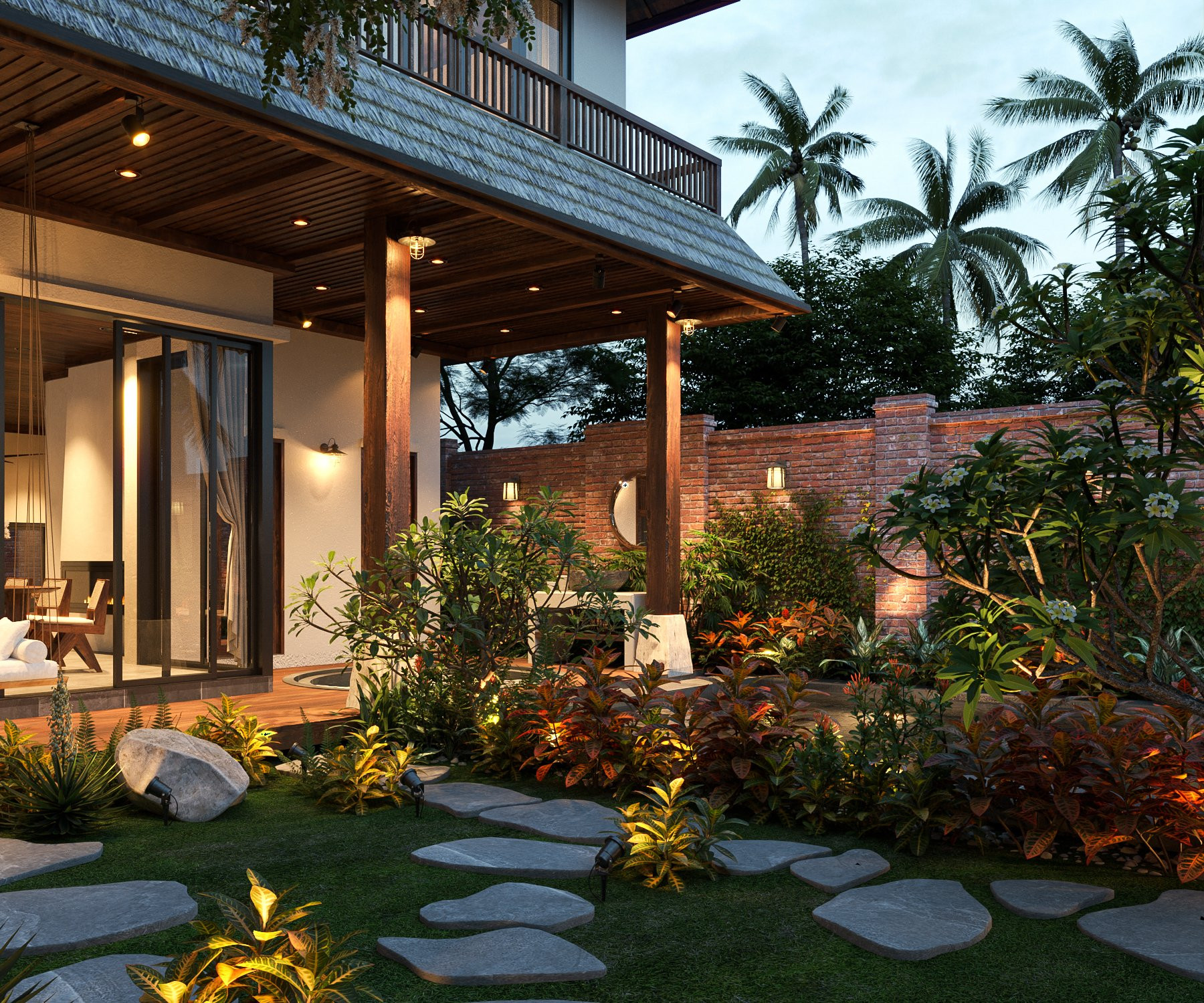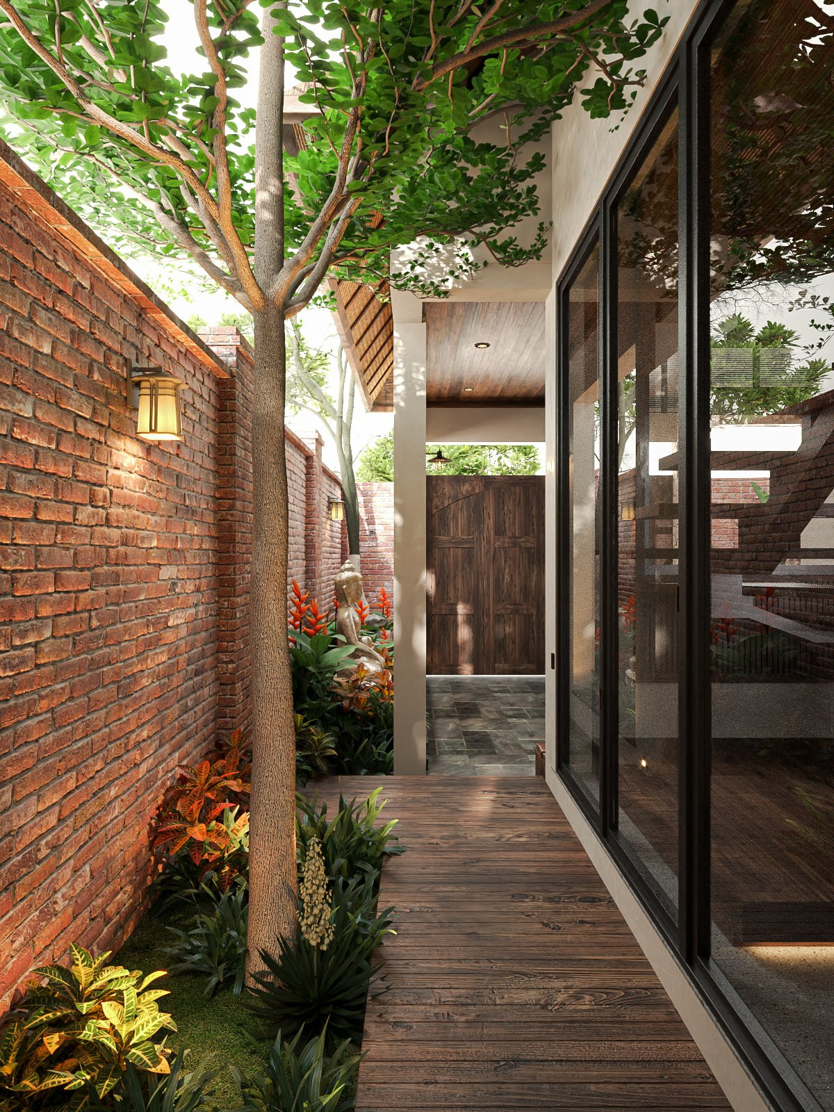 Phát triển theo hơi hướng mang cảm nhận về chuỗi không gian - chứa đựng những cảm xúc đa chiều, ấm áp, bình yên và thanh tịnh. Gia chủ với tâm hồn hướng Phật, yêu thích cây xanh và những điều tự nhiên nhất của tạo hóa.