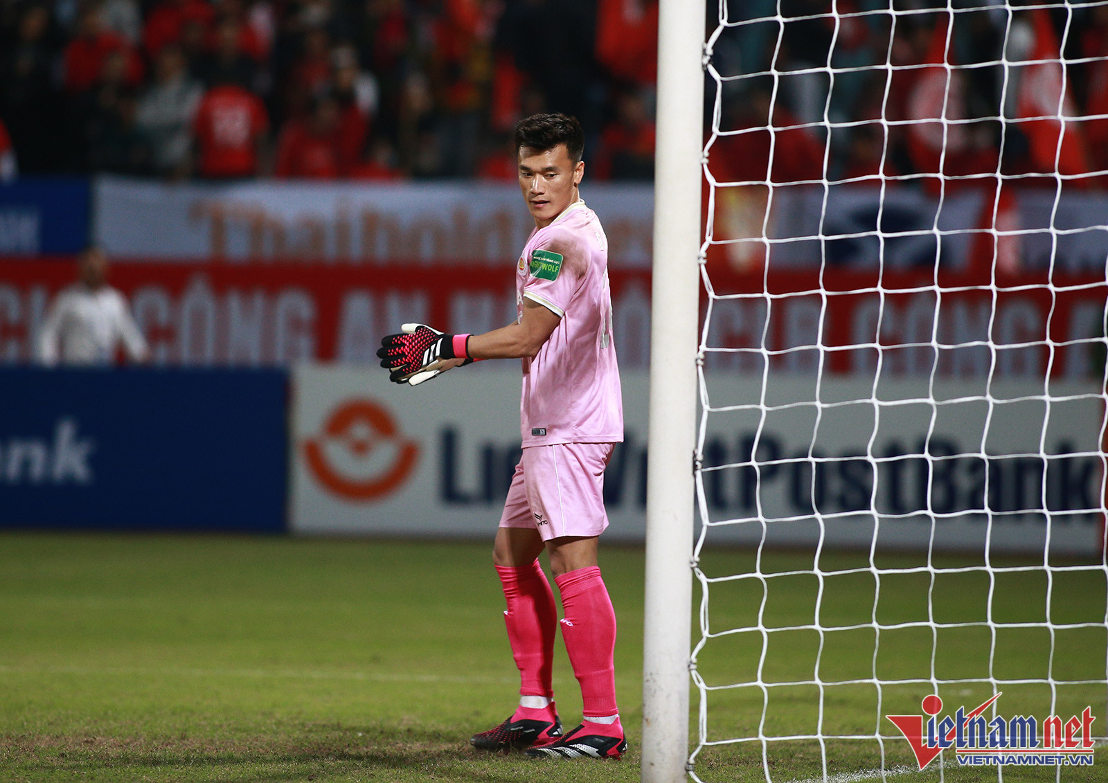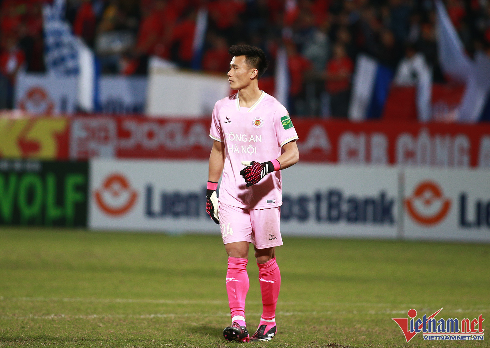 Thủ thành Bùi Tiến Dũng của CAHN phải đổi áo thi đấu ngay trước giờ bóng lăn trong trận derby gặp Viettel, vòng 3 V-League 2023.