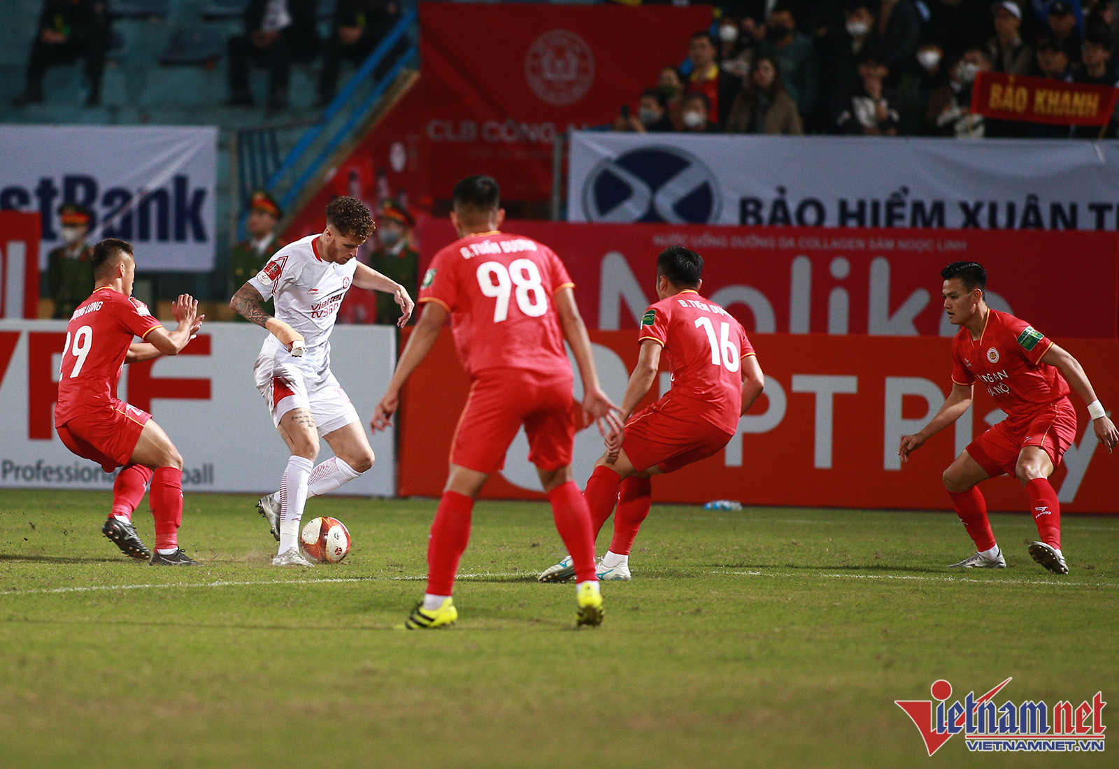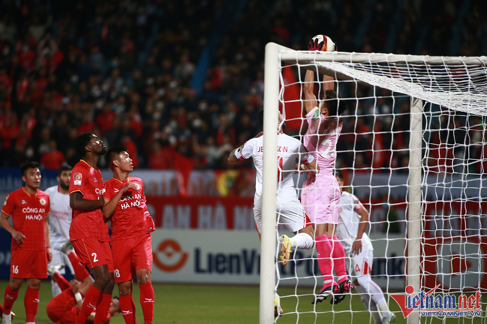 Trận đấu giữa CAHN vs Viettel là tâm điểm của vòng 3 V-League. Trận derby thủ đô lăn bóng vào lúc 19h15 trên sân Hàng Đẫy tối 14/2.Khi hai đội chuẩn bị cho trận đấu thì thủ thành Bùi Tiến Dũng của CAHN gặp phải sự cố bất ngờ.Cựu thủ thành U23 Việt Nam do mặc áo cùng màu trắng với đội bạn nên anh buộc phải thay bằng một trang phục có màu khác.Việc Bùi Tiến Dũng phải thay áo thi đấu khiến trận đấu gián đoạn gần 15 phút.Trong thời gian chờ đợi, các cầu thủ hai đội đá bóng qua lại trên sân để không bị "nguội cơ", trong khi các CĐV cổ vũ cuồng nhiệt trên khán đài.Trận đấu diễn ra rất hấp dẫn. Viettel chủ động tấn công và tạo ra nhiều cơ hội trong hiệp 1.Bùi Tiến Dũng có một số tình huống cứu thua xuất sắc.Đây là trận thứ 3 Tiến Dũng được bắt chính.Tuy nhiên, Bùi Tiến Dũng của Viettel mới là cầu thủ tỏa sáng hơn. Anh đánh đầu ghi bàn giúp đội bóng áo lính mở tỷ số, tạo lợi thế dẫn trước trong hiệp 1.