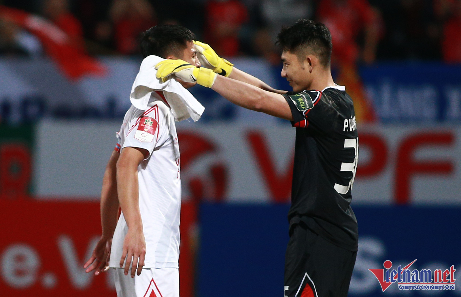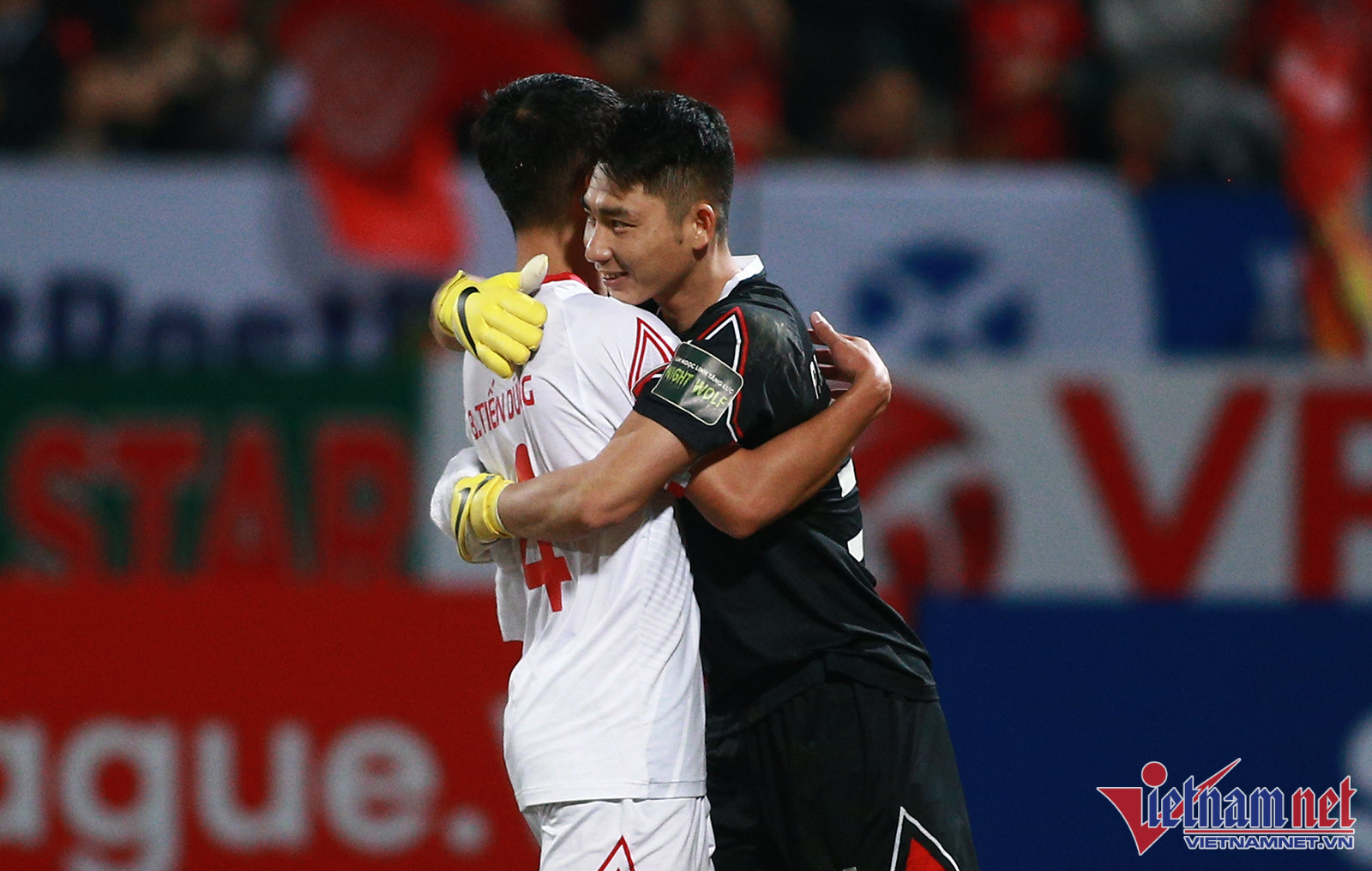 Trận derby giữa CAHN vs Viettel diễn ra rất hấp dẫn, đúng với mong chờ của người hâm mộ Thủ đô.Đây là trận đấu các ngôi sao bên phía Viettel chơi nổi bật hơn. Hoàng Đức chính là cầu thủ có pha kiến tạo giúp Bùi Tiến Dũng mở tỷ số, nhưng sau đó anh gặp chấn thương phải rời sân.Niềm vui của Bùi Tiến Dũng khi giúp Viettel vượt lên dẫn trước.Nhưng chính Tiến Dũng lại là cầu thủ đánh đầu đốt lưới nhà ở cuối hiệp 2.Phút 90, Văn Hậu tạt bóng từ cánh trái, trung vệ Bùi Tiến Dũng trong nỗ lực đánh đầu cản phá vô tình đưa bóng về lưới nhà khiến thủ môn Văn Phong hoàn toàn bất lực.Thủ thành Viettel không thể cứu thua trong tình huống này.Sau khi có bàn thắng may mắn, CAHN chơi dồn ép khiến những phút cuối trận diễn ra nghẹt thở.Dù vậy, Văn Thanh hay Phan Văn Đức, Văn Hậu trận này chơi không tốt.Văn Phong đã hoàn thành nhiệm vụ khi giúp Viettel thắng chung cuộc 2-1.Sau trận đấu, Bùi Tiến Dũng tiến về phía Văn Phong nói lời xin lỗi vì đã đốt lưới nhà.Dù vậy đây là pha bóng mà thủ quân Viettel không phải là người có lỗi hoàn toàn. Anh có một trận đấu đáng khen hơn là trách.Tiến Dũng cùng các đồng đội ăn mừng chiến thắng rất quan trọng trước CAHN.Sau 3 trận đấu, Viettel bất bại với 1 thắng, 2 hòa.