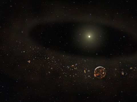 Ảnh mô phỏng tình trạng hiện thời: vành đai bụi đã biến mất trong khi các thiên thạch và hành tinh bao quanh ngôi sao vẫn còn đó. Ảnh: Reuters.