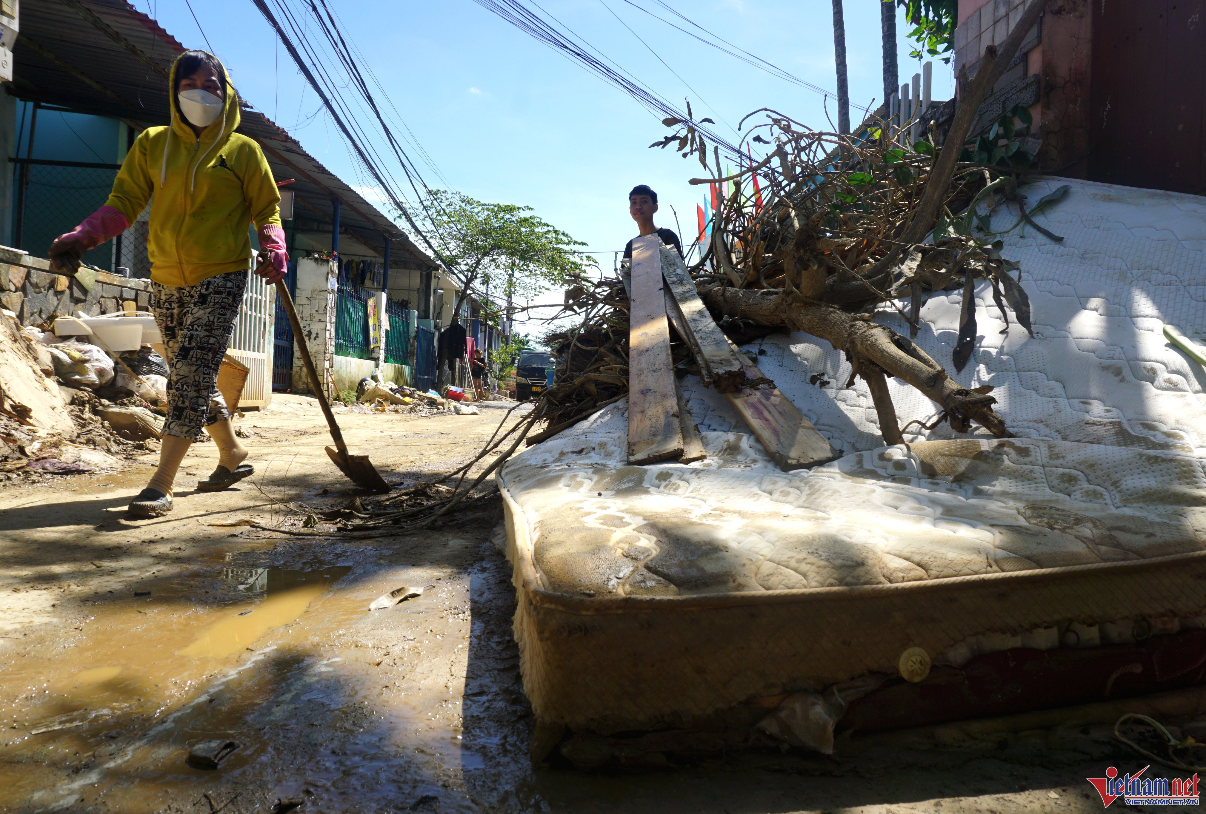 Gần một tuần sau trận ngập lụt lịch sử, nhiều khu dân cư ở quận Liên Chiểu (TP Đà Nẵng) vẫn đầy bùn non, ngổn ngangTrong đợt mưa lớn vừa qua, quận Liên Chiểu là nơi ngập nặng nhất ở Đà Nẵng với gần 28.000 ngôi nhà bị ngập. Đến thời điểm này, trên các tuyến đường, nhiều nhà dân vẫn đầy bùn nonSáng 20/10, ghi nhận của VietNamNet, tại khu dân cư đường Mẹ Suốt, Phạm Như Xương, Hoàng Văn Thái (phường Hòa Khánh Nam, quận Liên Chiểu) nhiều hộ dân vẫn chưa dọn dẹp xong nhà cửa sau khi lũ rútLượng bùn non lớn khiến việc dọn dẹp mất nhiều thời gian, cuộc sống người dân đảo lộnXịt rửa bàn ghế, ông Thái Thành Chí (58 tuổi, ngụ tổ 32, phường Hòa Khánh Nam) cho biết, 5 ngày qua ông và vợ con dọn dẹp nhưng nhà vẫn chưa hết bùn đất.