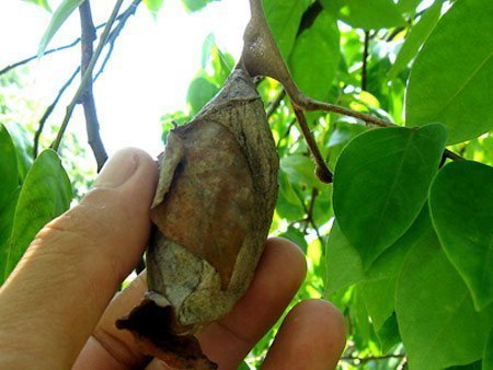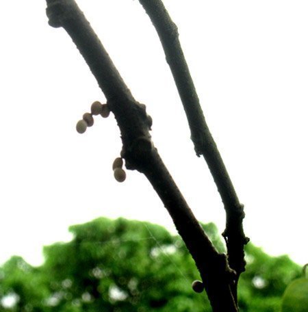 Từ câu chuyện của các cụ, tôi để ý, thấy cạnh cây dâu da xoan trước nhà chị Tuyết, có 2 cây khế tốt um tùm. Tuy nhiên, tìm kiếm mãi mà không thấy tổ kén nào.