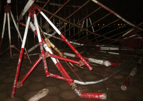 Hàng rào bằng sắt dầy cả chục cm vẫn không thể chống được sức mạnh của đám đông. |