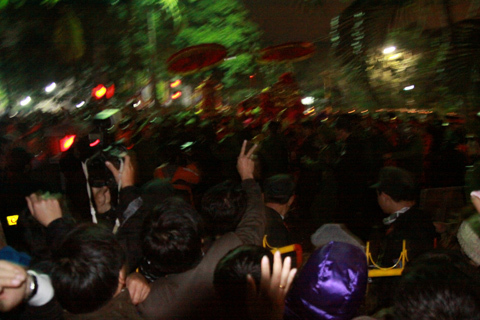 Bất chấp sự chuẩn bị của ban tổ chức (BTC), đến lúc chính thức phát ấn (23h đêm mười bốn tháng giêng ) mọi công tác an ninh đã không còn hiệu quả. Sức mạnh của đám đông đã bẻ gãy từng hàng rào thép dầy cả chục cm, nhiều người đã lọt được vào khu vực trong đền bằng các đường không qua hàng rào và đường bộ. Giờ phát ấn đến, cảnh sát bảo vệ đành phải mở rào để tránh thảm kịch xảy ra.