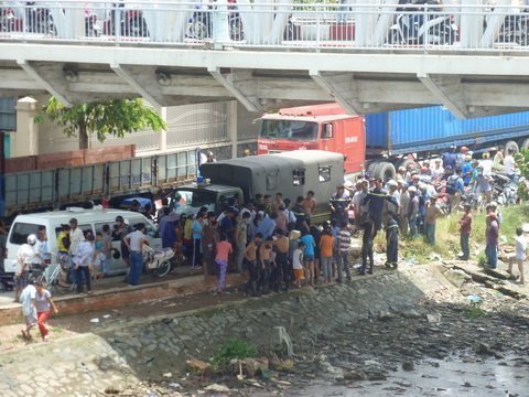Vụ việc xảy ra vào lúc 10g sáng ngày 23/8 đã thu hút khá đông người hiếu kỳ tụ tập dưới chân cầu và dạ cầu gây cảnh kẹt xe nghiêm trọng.