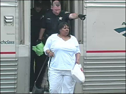 Mặc dù đoàn tàu chưa đến ga nhưng có lẽ sự khó chịu của các hành khách khác đã lên đến đỉnh điểm nên cảnh sát đã phải dừng tàu giữa đường và áp giải “một cách thân thiện” người phụ nữ này khỏi đoàn tàu với lý do “cư xử không đúng mực”, không chấp hành chỉ dẫn của nhân viên trên tàu và đấu khẩu, gây bực bội cho các hành khách khác.