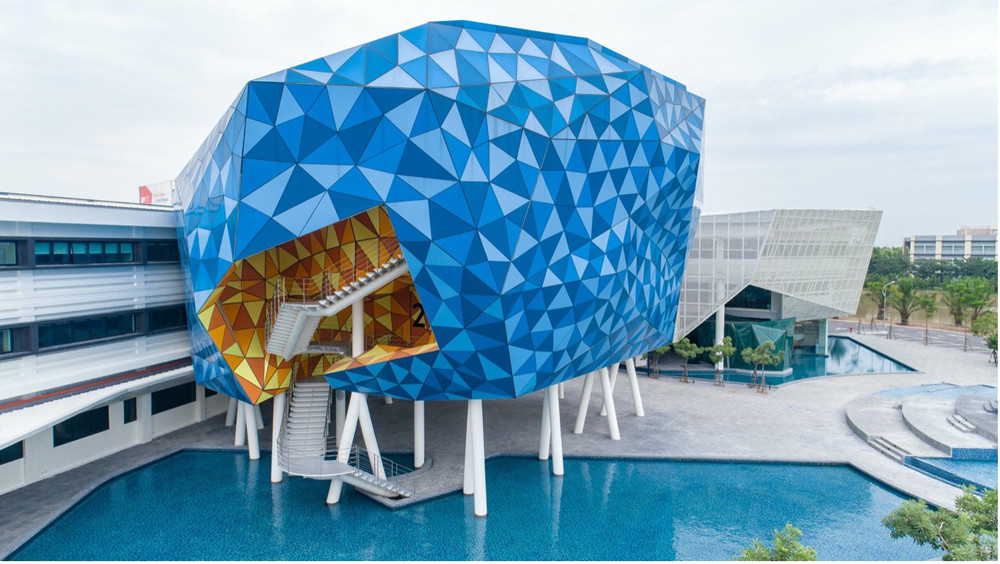 Các khu vực trong nhà và ngoài trời được bố trí hài hoà giữa cảnh quan thiên nhiên trong lành. Phong cách kiến trúc tối giản, phóng khoáng mang tính biểu tượng của kỷ nguyên 4.0 cũng góp phần phản ánh triết lý giáo dục tại BUV.