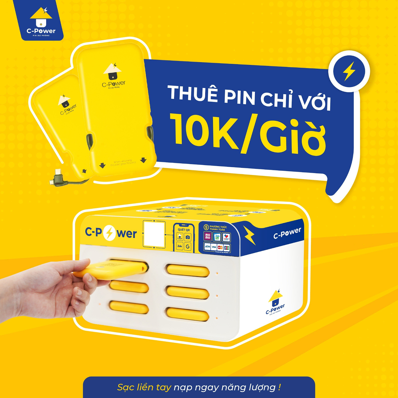 Đặc biệt, việc thanh toán cũng rất thuận tiện qua ví điện tử như MoMo, ZaloPay,… Trước khi thuê pin, bạn cần phải đóng khoản tiền cọc 300.000 đồng/ lần thuê pin sạc tại C-power. Tiền cọc sẽ được hoàn vào tài khoản tương ứng, sau khi trừ chi phí thuê pin trong vòng 60s.