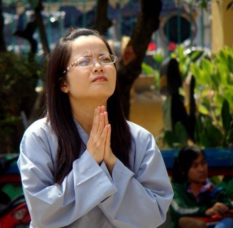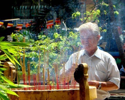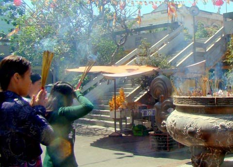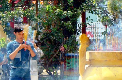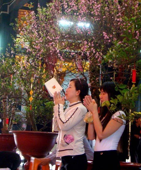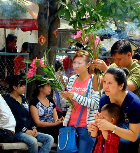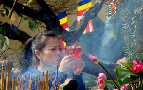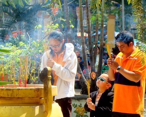 Nam. Đến chùa, mọi người cầu mong một năm mới bình an, may mắn sẽ đến với bản