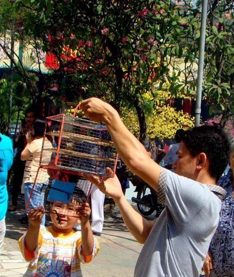 hoa mai, hoa đào... hoặc các hoạt động chuẩn bị Tết, mua sắm, vui chơi, giải