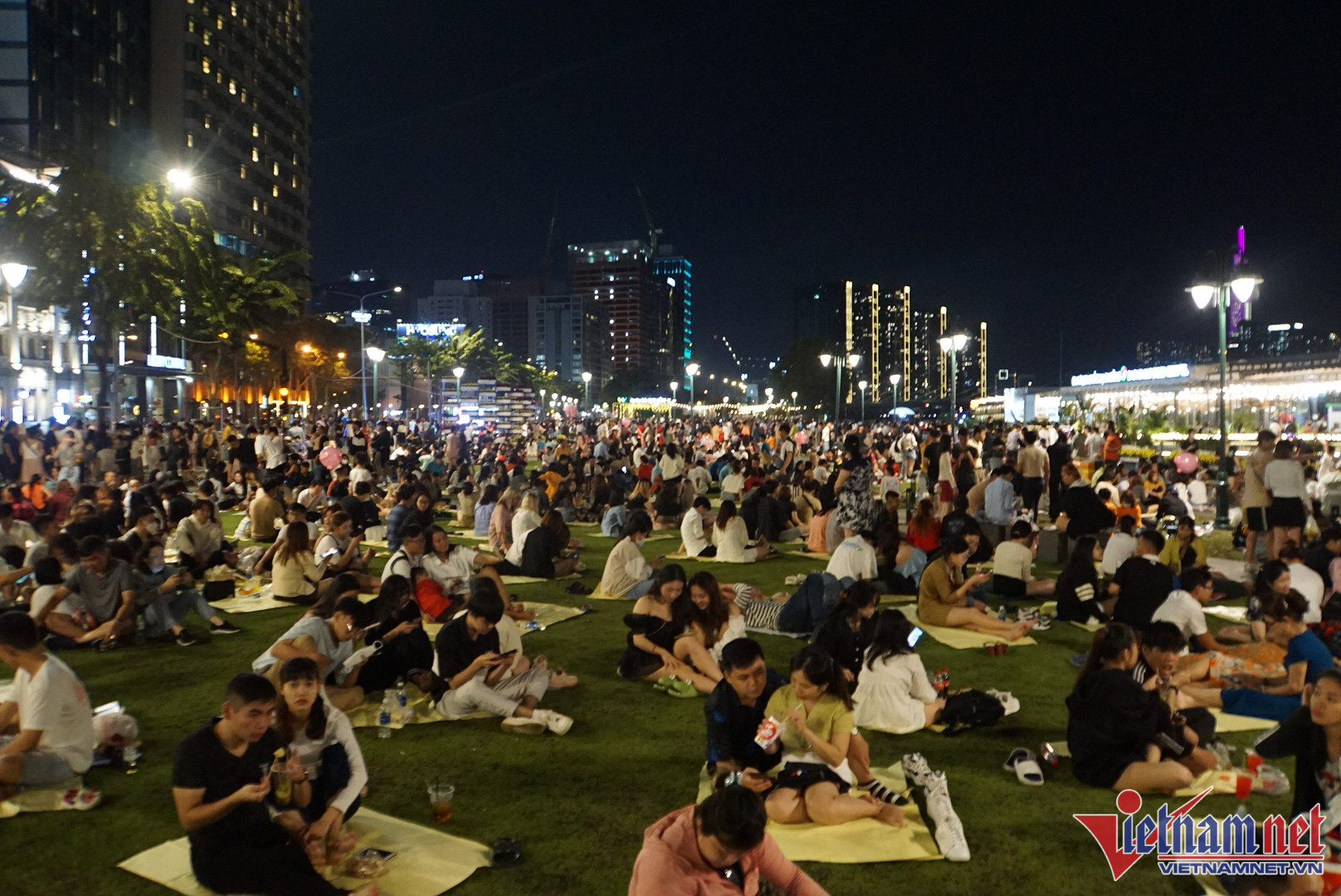 Người dân ra công viên Bạch Đằng chờ xem bắn pháo hoa. Từ 0h đến 0h15 ngày 1/1/2023, TP.HCM sẽ bắn pháo hoa tầm cao ở đầu đường hầm sông Sài Gòn (TP Thủ Đức).