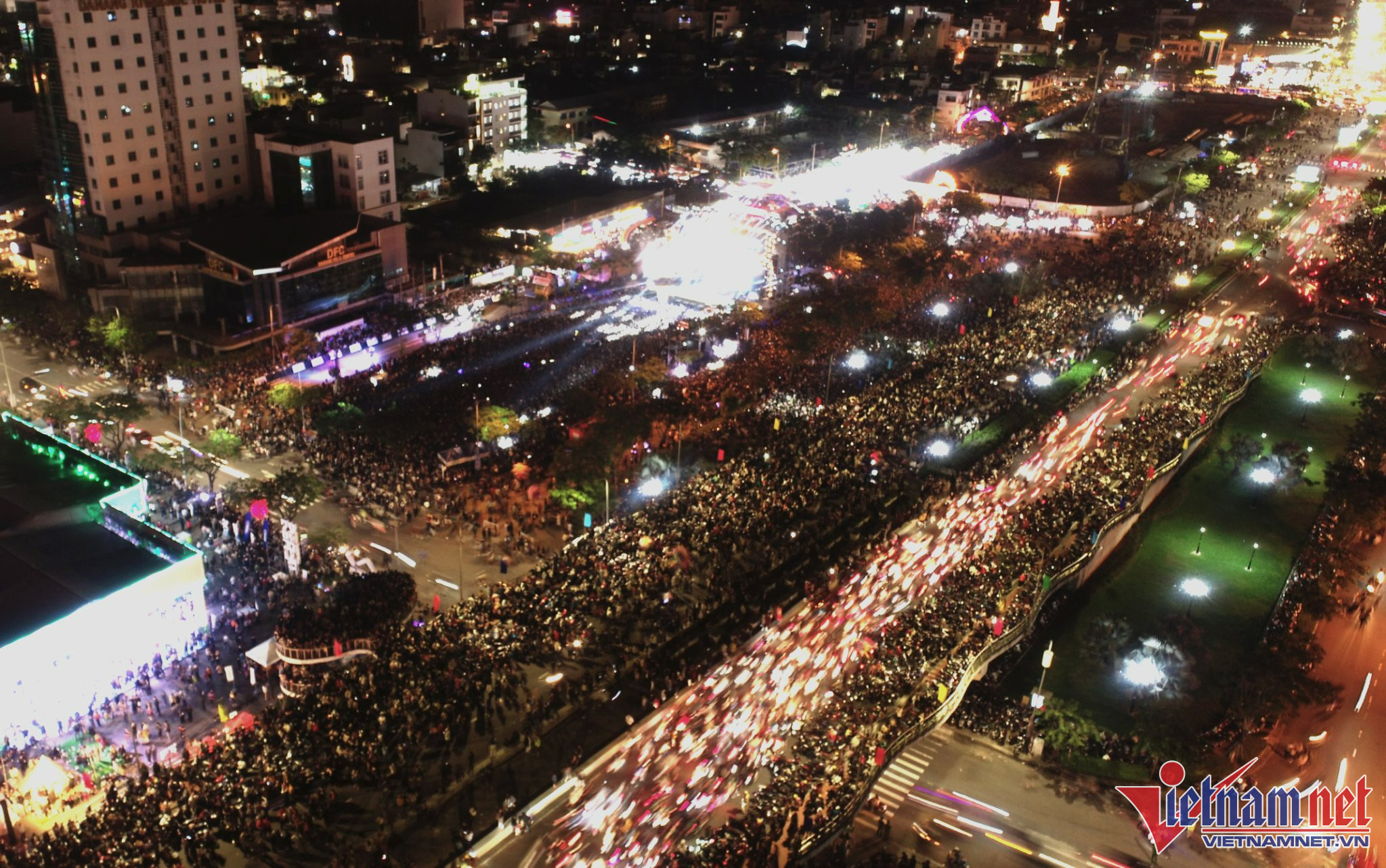 Cùng với đó, nhiều người bắt đầu đổ xuống phố vui chơi. Tại quảng trường 2 tháng 4 - nằm giáp biển đường Trần Phú, lượng người đổ về mỗi lúc một đông. Chính quyền đã cấm xe qua lại khu vực này, kéo dài hơn 300m trong thời gian tổ chức chương trình Countdown chào đón 2023.