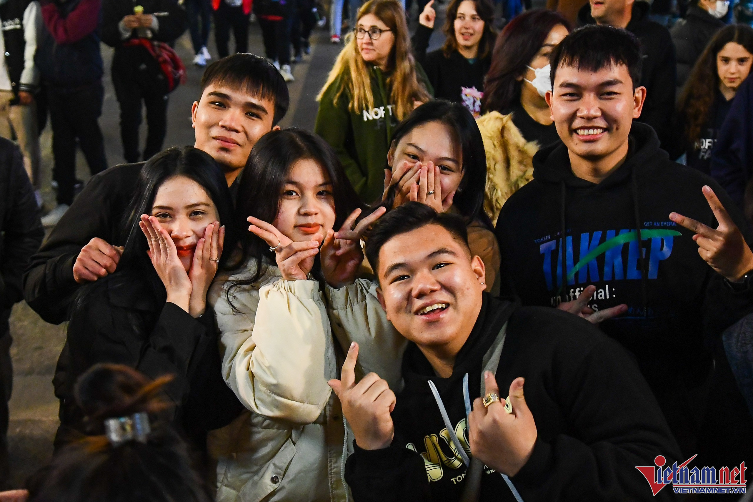 Nhiều người dân, đặc biệt là các bạn trẻ đã tập trung về khu vực phố đi bộ hồ Hoàn Kiếm để chuẩn bị cho buổi Countdown (đếm ngược) đón năm mới 2023 vào lúc 24h.