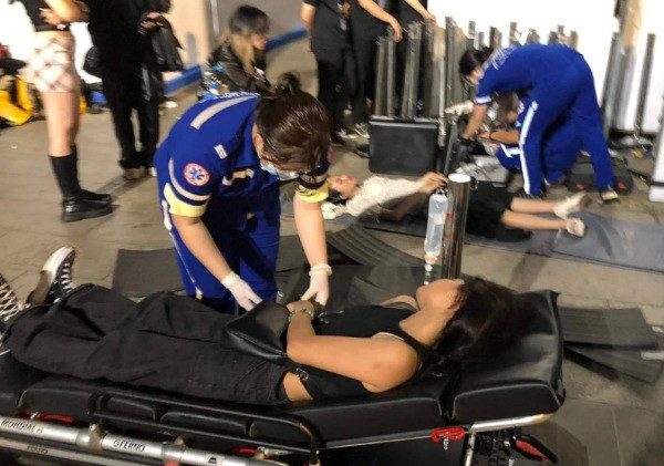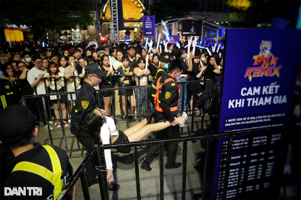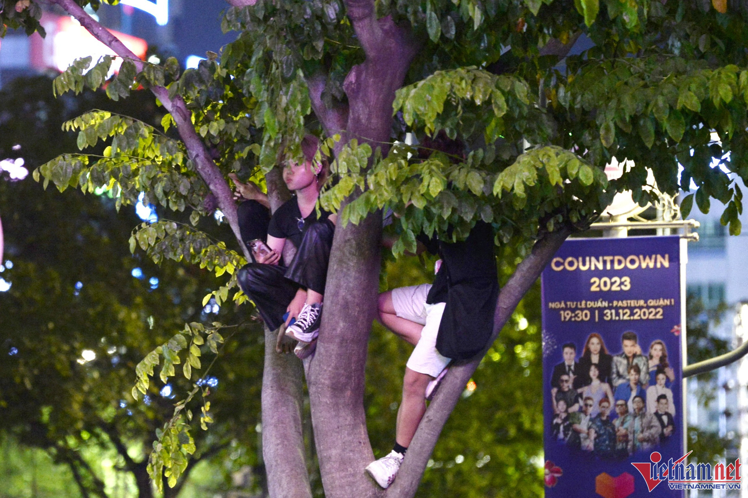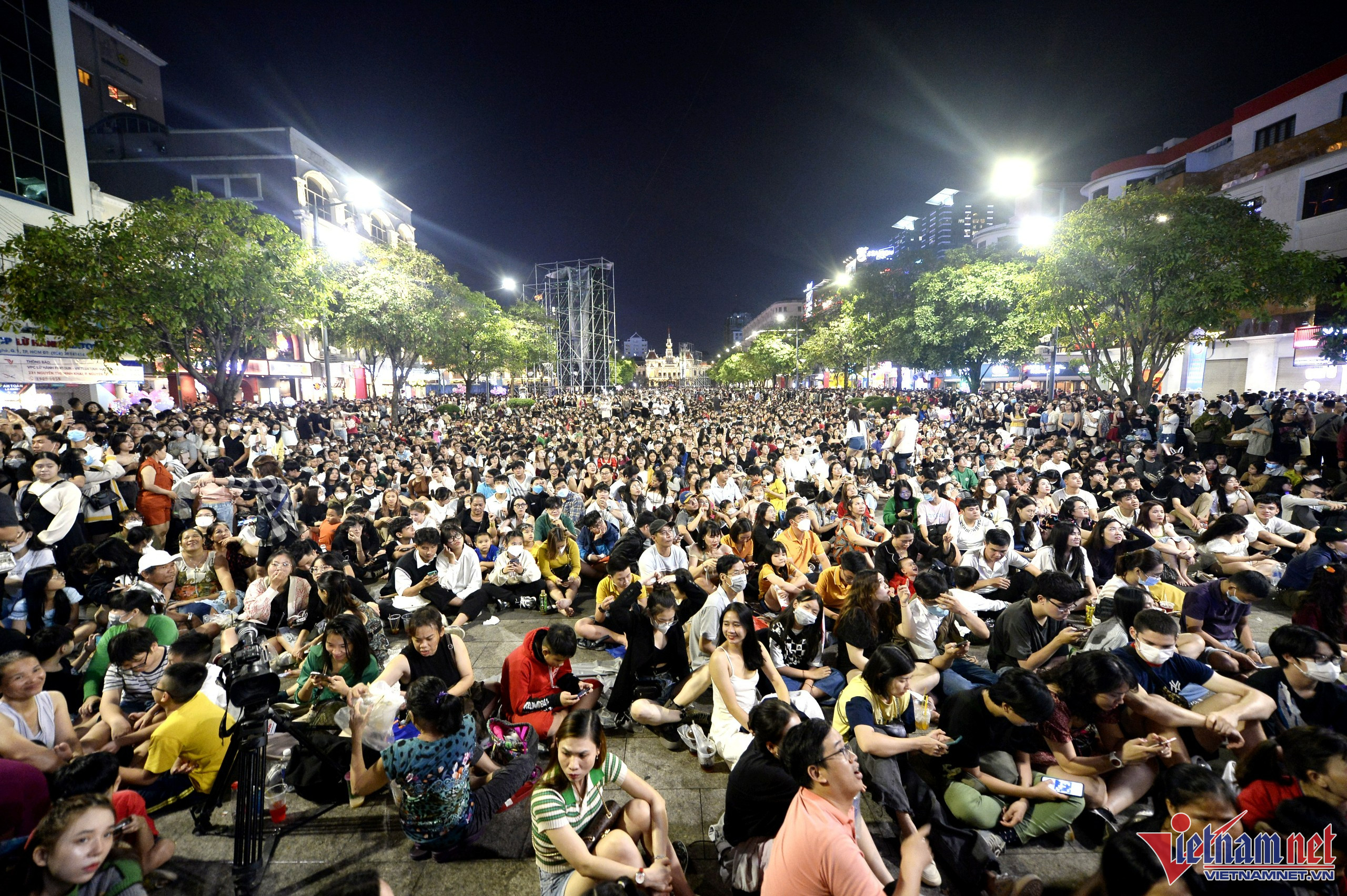 "Biển người" trên phố đi bộ Nguyễn Huệ chờ sự kiện đếm ngược (countdown) và xem bắn pháo hoa. Có một số bạn trẻ ngất xỉu, được nhân viên làm nhiệm vụ đưa ra xe cấp cứu.