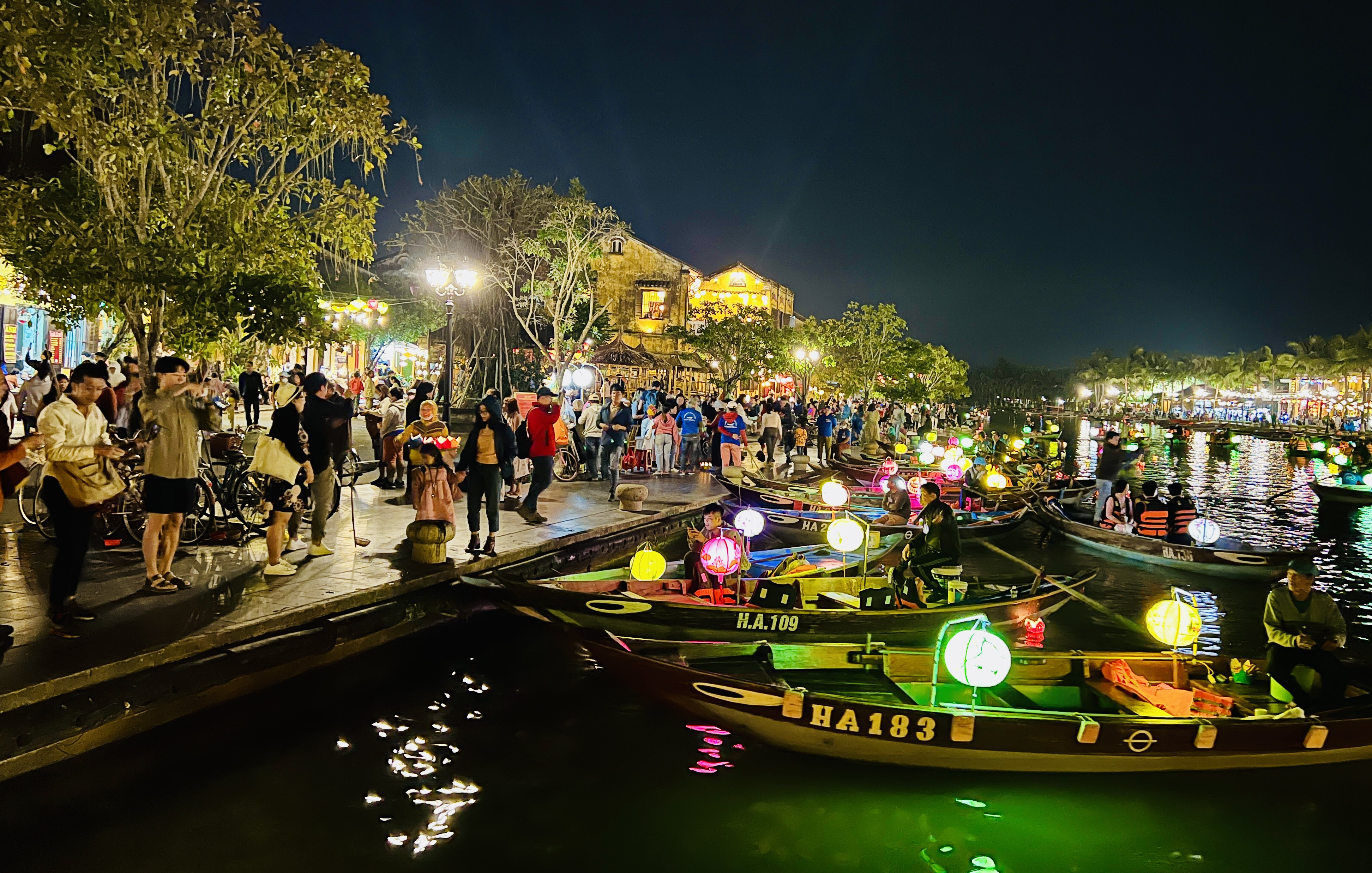 Tối 31/12, hàng nghìn người đổ về phố cổ Hội An (tỉnh Quảng Nam) chào đón năm mới.
