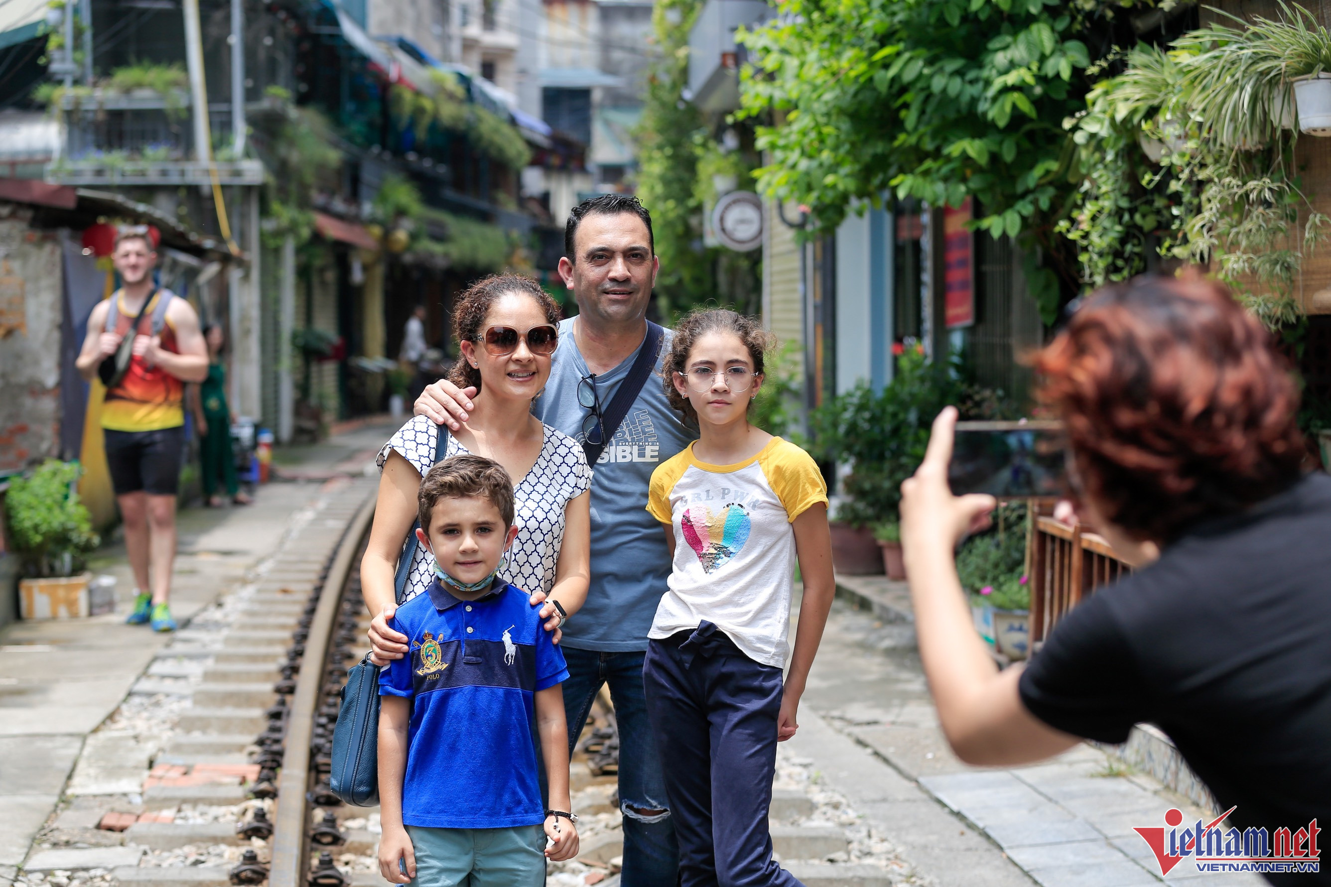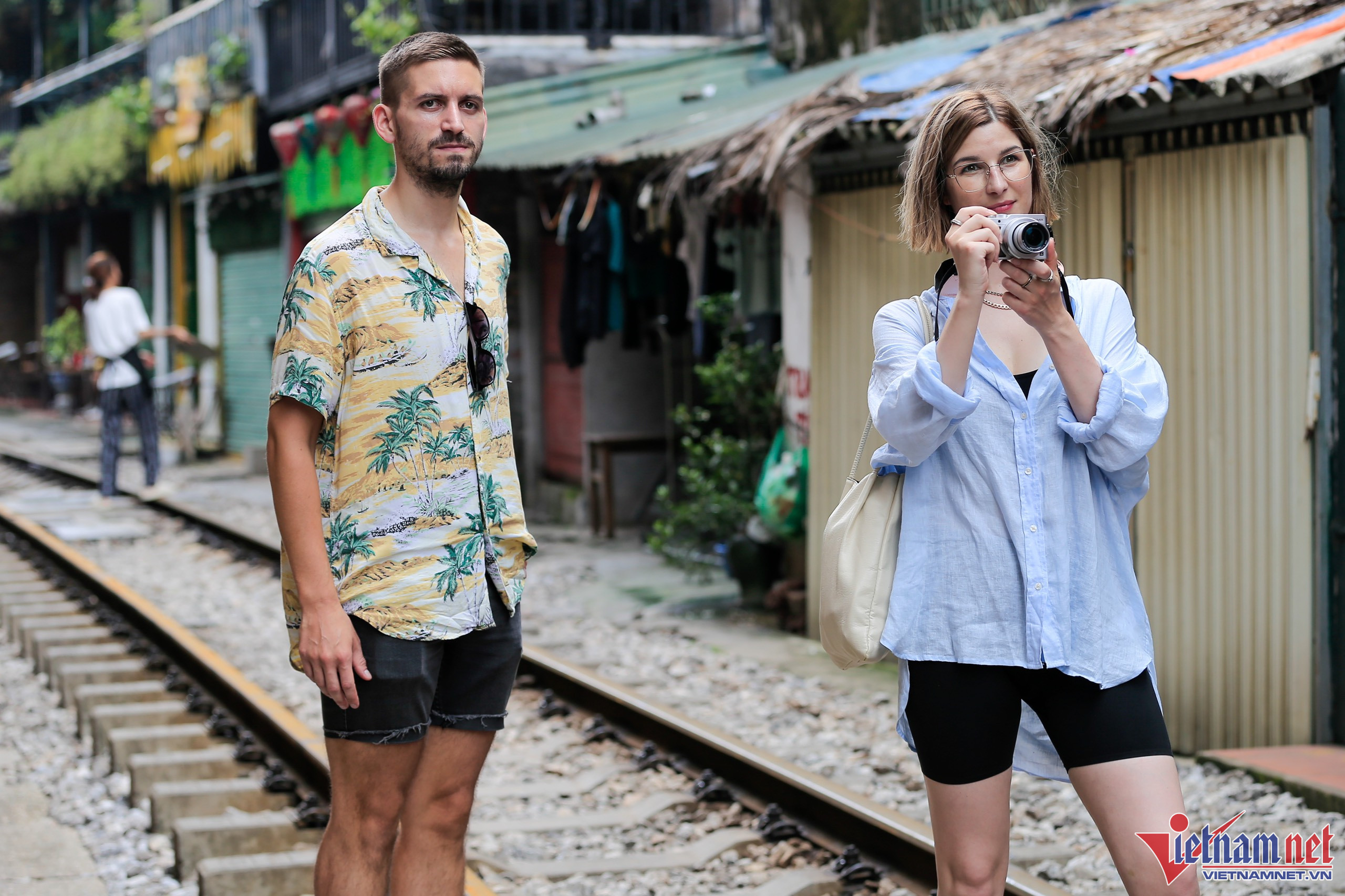Xóm cà phê đường tàu sau thời gian dài bị ngừng hoạt động do không đảm bảo an toàn giao thông, gần đây đã nhộn nhịp trở lại với nhiều du khách quốc tế đến tham quan.Đến Hà Nội từ Mexico, vợ chồng anh Juca sau khi được giới thiệu địa điểm vui chơi này đã đưa hai con tới trải nghiệm. Anh cho biết cảm thấy lạ lẫm và rất thích thú.Ngoài việc đi bộ hay ngồi uống cà phê, nhiều du khách nước ngoài còn đạp xe dạo dọc phố.Chị Catherine (đến từ Áo, bên phải), thốt lên: “Ở đây thật sự rất đẹp và đặc biệt. Đất nước chúng tôi không có địa điểm check-in như thế này. Ngoài cảnh đẹp thì một ấn tượng khác đối với tôi là người Việt Nam rất tốt bụng và thân thiện”.Một du khách người Hàn Quốc hay làm video về các nước ông đặt chân tới đã không bỏ qua địa điểm này để bổ sung vào kho tư liệu của mình.Anh Jessie và bạn gái (đến từ Hà Lan) thích thú với việc chụp ảnh ở đường ray. “Phố đường tàu là địa điểm đầu tiên chúng tôi đến chơi ở Hà Nội. Khi chụp ảnh ở đây tôi thấy hơi sợ nhưng rất vui. Tiếc là hôm nay tàu không chạy qua, chúng tôi sẽ quay lại vào ngày mai”, anh Jessie nói. Anh Balazs và chị Zsofi là giáo viên dạy tiếng Anh. “Sống ở Hà Nội được một thời gian rồi nhưng đây mới là lần đầu chúng tôi đến cà phê đường tàu. Thật sự nơi này rất khác so với những gì tôi tưởng tượng trước đó”, Balazs nói. Nhiều du khách chọn chỗ ngồi trên tầng 2 để có thể quan sát không gian phía dưới cũng như lúc tàu chạy qua. Những tấm thiệp in hình các địa điểm nổi tiếng tại Việt Nam thu hút nhiều khách nước ngoài. Sau ít phút lựa chọn, nữ du khách này đã mua 3 tấm với giá 100.000 đồng. Ngoài lượng du khách quốc tế chiếm đa số, khách trong nước đến từ các tỉnh, thành khác cũng xuất hiện và trải nghiệm nhưng không nhiều. Chị Khánh Ly (TP.HCM) chia sẻ: “Sau nhiều lần tới Hà Nội mà chưa có cơ hội đến khu vực cà phê đường tàu để trải nghiệm, hôm nay tôi tranh thủ thời gian tới và chụp vài bức hình để khoe với bạn bè”. Tháng 10/2019, UBND TP Hà Nội từng yêu cầu xử lý vi phạm trật tự an toàn giao thông đường sắt, ngăn chặn và giải tán các cửa hàng cho ngồi cà phê ở dưới lòng đường sắt. Kể từ tháng 4 vừa qua, các tiểu thương, hộ kinh doanh bắt đầu rục rịch kinh doanh trở lại.