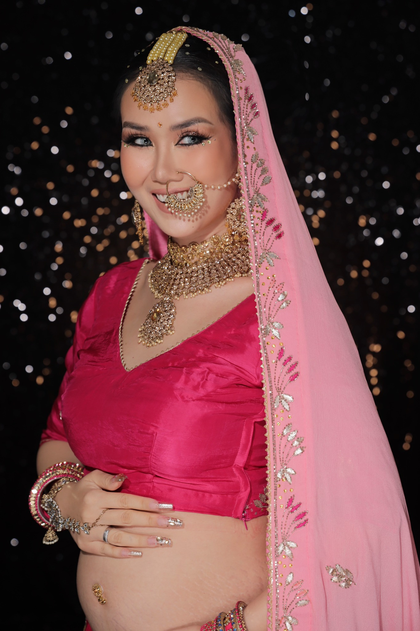 Võ Hạ Trâm gây ấn tượng với loạt ảnh mặc trang phục, trang điểm theo phong cách Ấn Độ. Cô hạnh phúc công khai đang trong quá trình mang thai con thứ hai. Dưới bài đăng, nhiều bạn bè, đồng nghiệp và khán giả bình luận chúc mừng cặp đôi.