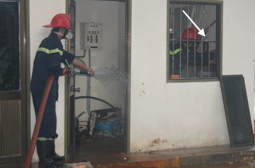 Được trang bị mặt nạ chống hơi độc, các chiến sĩ PCCC đã tiếp cận hai bình khí này dùng các biện pháp hàn kín vết thủng bằng giẻ thấm nước và vôi. Giải pháp này chỉ nhằm tạm ngăn chặn khí độc thoát ra.
