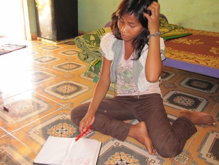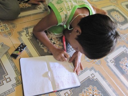 Là người có học cao nhất trong gia đình anh Siu Hơch và chị Rơ Châm Phim, dù đã học đến lớp 5 nhưng cô con gái Rơ Châm Tham cũng chỉ mới… biết đọc, biết viết. Mà ngay đến những nét chữ của Tham cũng mới dừng lại ở bước như… mới cầm bút thạo.