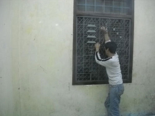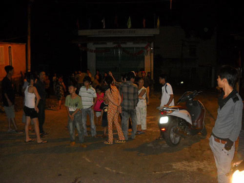 | Cả xóm bao vây căn nhà, không cho ông Hùng bỏ chạy. Ảnh: NLD |