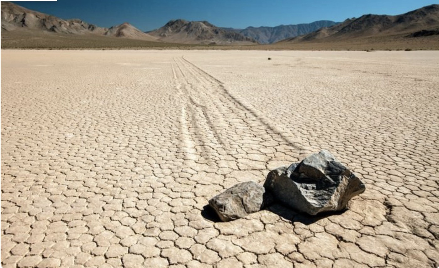 Theo National Parks, công viên quốc gia Thung lũng Chết nằm ở biên giới bang California và Nevada của Mỹ là nơi xảy ra một trong những hiện tượng lạ lùng nhất thế giới: các hòn đá tự di chuyển trên nền sa mạc và để lại những vệt dài trên cát. Các hòn đá có kích thước khác nhau, gồm cả lớn lẫn nhỏ.