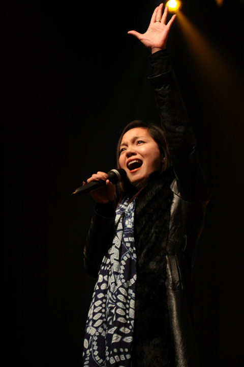 Phương Lan đang gắng hết sức mình cho đêm diễn.