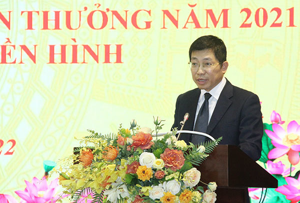 Sáng 25/3, Bộ TT&TT đã tổ chức hội nghị triển khai kế hoạch công tác năm 2022 và tổng kết phong trào thi đua khen thưởng năm 2021 lĩnh vực phát thanh, truyền hình với sự tham gia của đại diện các Bộ, ban, ngành và hơn 200 đại diện từ các đài PTTH. Trong ảnh: Ông Lưu Đình Phúc, Cục trưởng Cục PTTH và TTĐT báo cáo tại hội nghị |