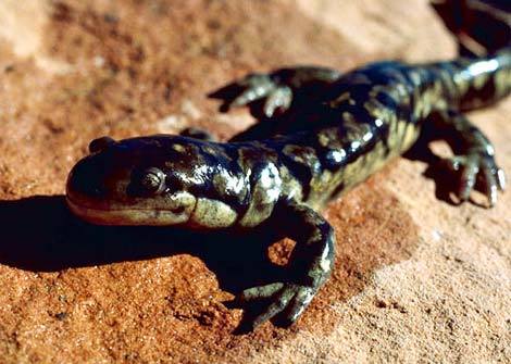Đây là loài kỳ nhông lớn nhất trên thế giới; gọi chúng là kỳ nhông hổ vì những hoa văn trên mình chúng giống với hoa văn của loài hổ. Loài kỳ nhông này khi trưởng thành có dài đến 35 cm và trên mình điểm những sọc hoặc đốm vàng. Đặc điểm nổi bật của loài này là chúng có thể biến hình tài tình trong lúc giao phối với con cái để có thể đạt thành công trong việc duy trì nòi giống. Trong nghi thức sinh sản của loài này, con đực sẽ phóng thích một túi tinh trùng để con cái nuốt vào bụng. Khi một con đực không tìm được bạn tình, nó sẽ dùng một “thủ đoạn” khác để được làm bố. Lúc này, nó sẽ đóng giả làm một con cái khác để tiếp cận đôi tình nhân. Việc nó đóng giả làm con cái sẽ làm con đực kia không cảnh giác về đề phòng sự có mặt của nó; sau đó tên giả mạo này sẽ đặt túi tinh trùng của mình lên phía trên túi tinh trùng của đối thủ, và rồi con cái sẽ chọn cái túi này của anh chàng lắm chiêu này.