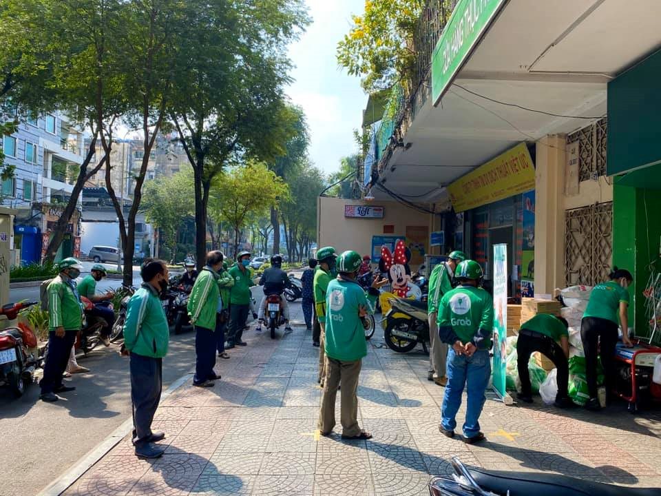 Hôm 14/4, trên mạng xã hội xuất hiện hình ảnh một số tài xế Grab đứng xếp hàng nhận gạo trước cửa một siêu thị tại TP.HCM. Người đăng tấm ảnh cho biết các tài xế rất háo hức chờ đến lượt.