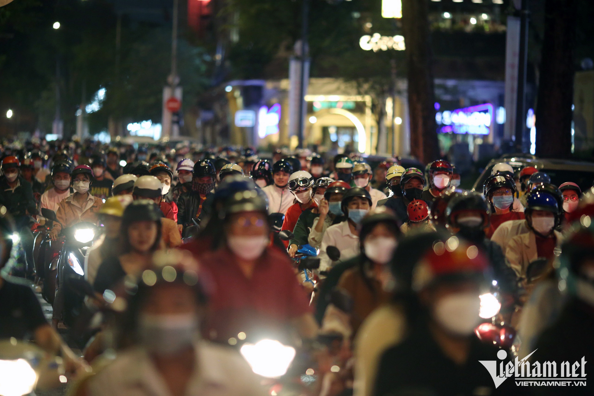 Dòng người tìm hướng ra phố đi bộ Nguyễn Huệ một cách khó khăn. Trước đó, họ phải gửi xe máy ở vị trí rất xa.