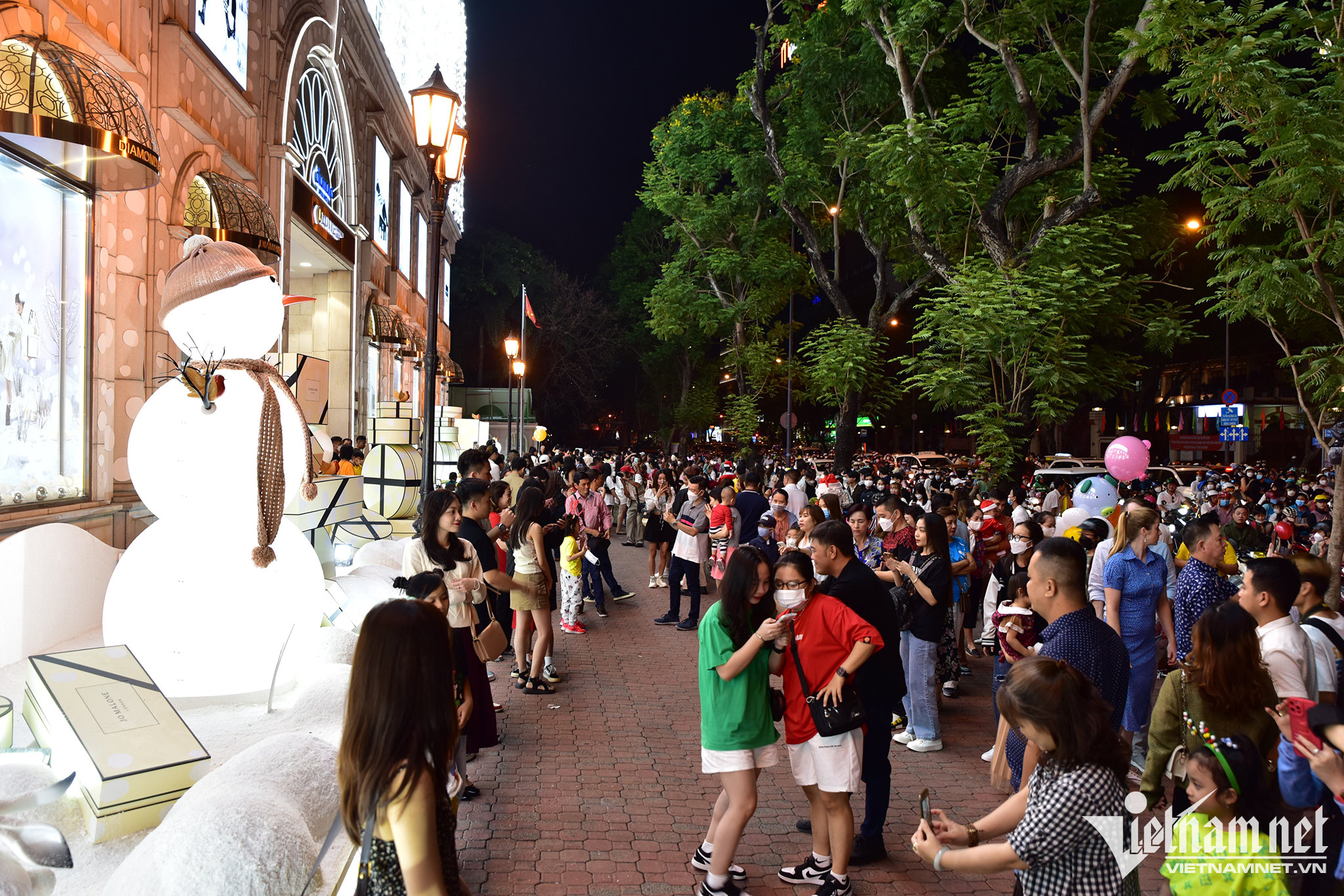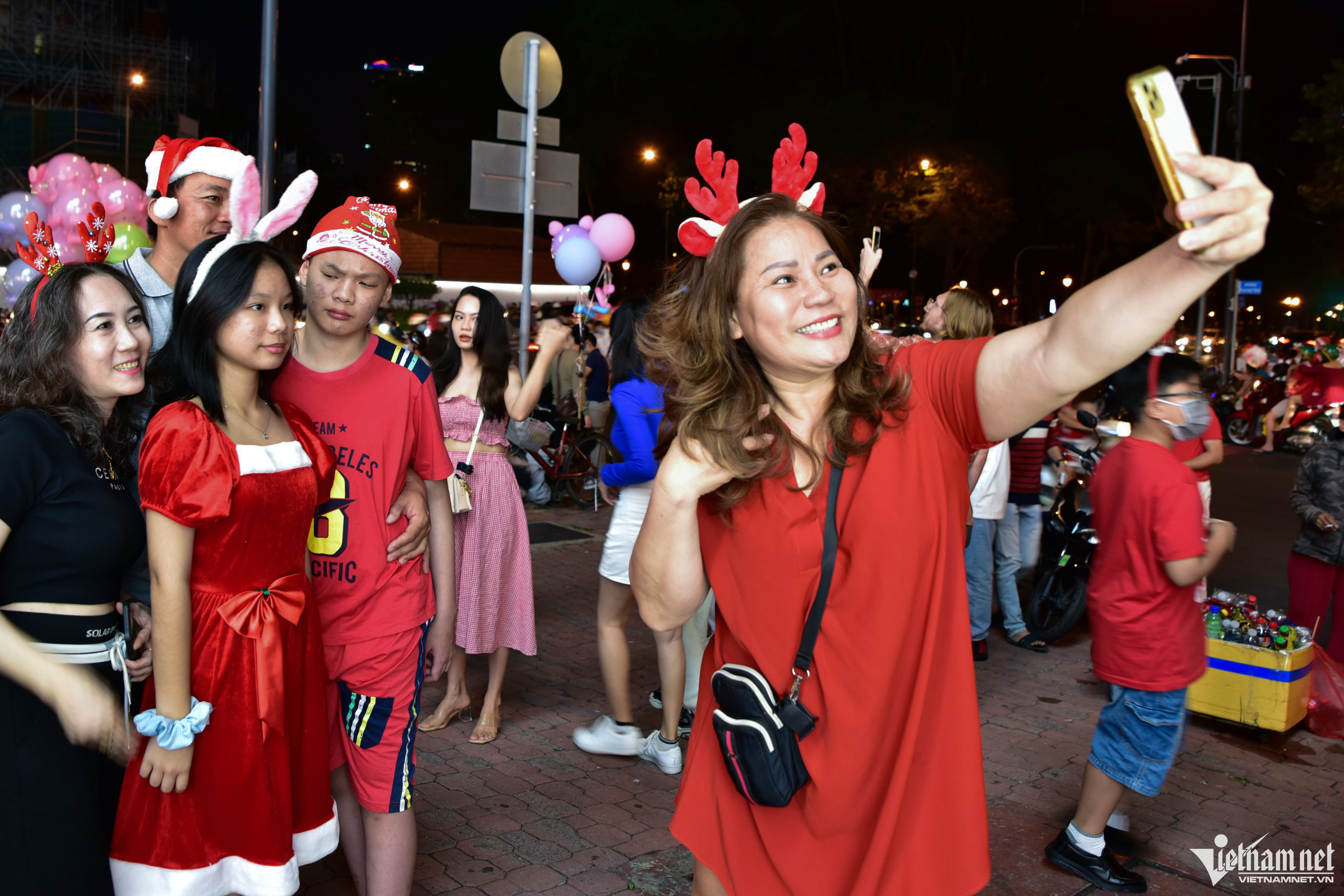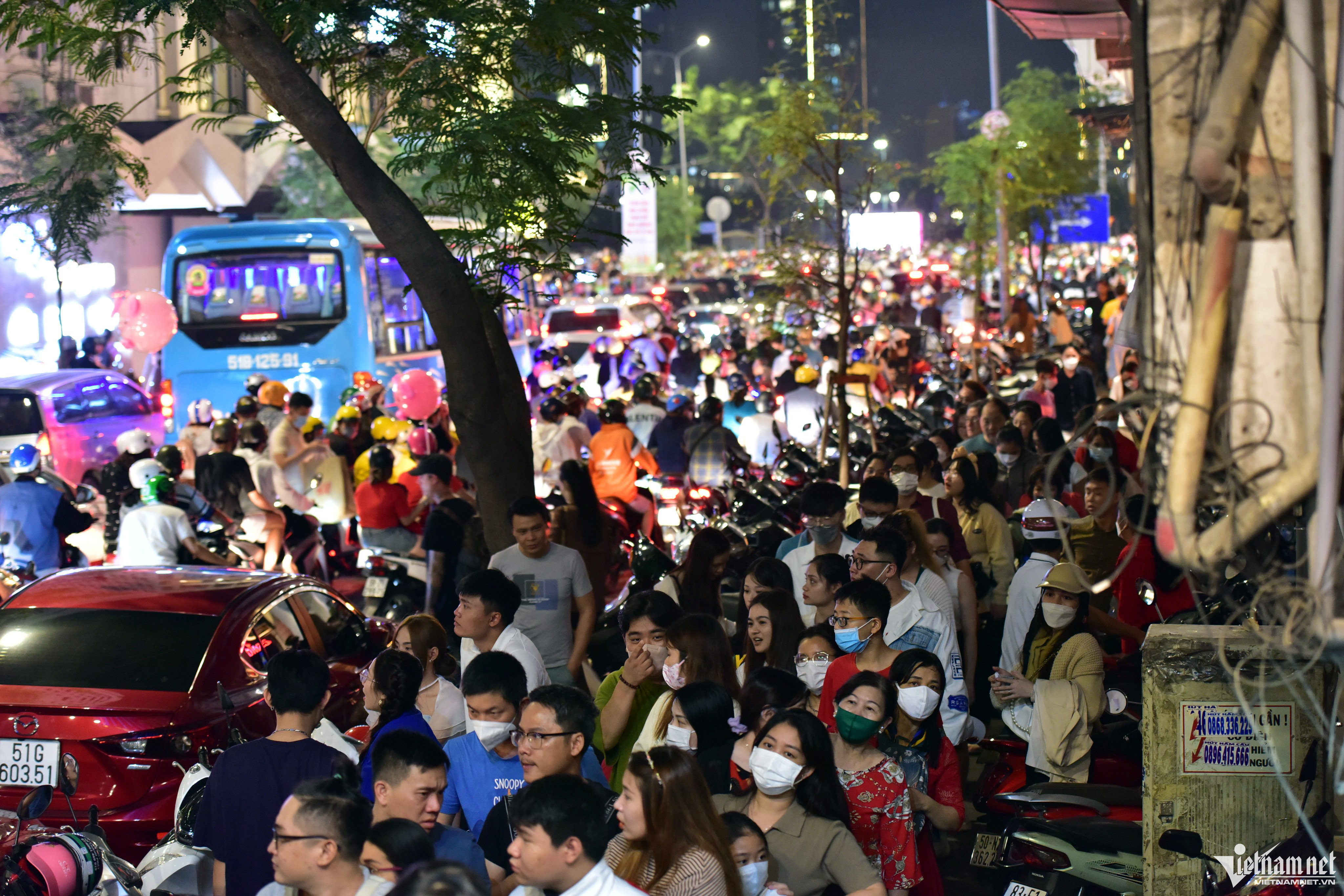 Phố đi bộ Nguyễn Huệ trở thành điểm vui chơi lớn nhất thành phố mỗi dịp lễ. Vào đêm Noel, nơi đây không ngoại lệ, do Nhà thờ Đức Bà đang được quây lô cốt để sửa chữa.