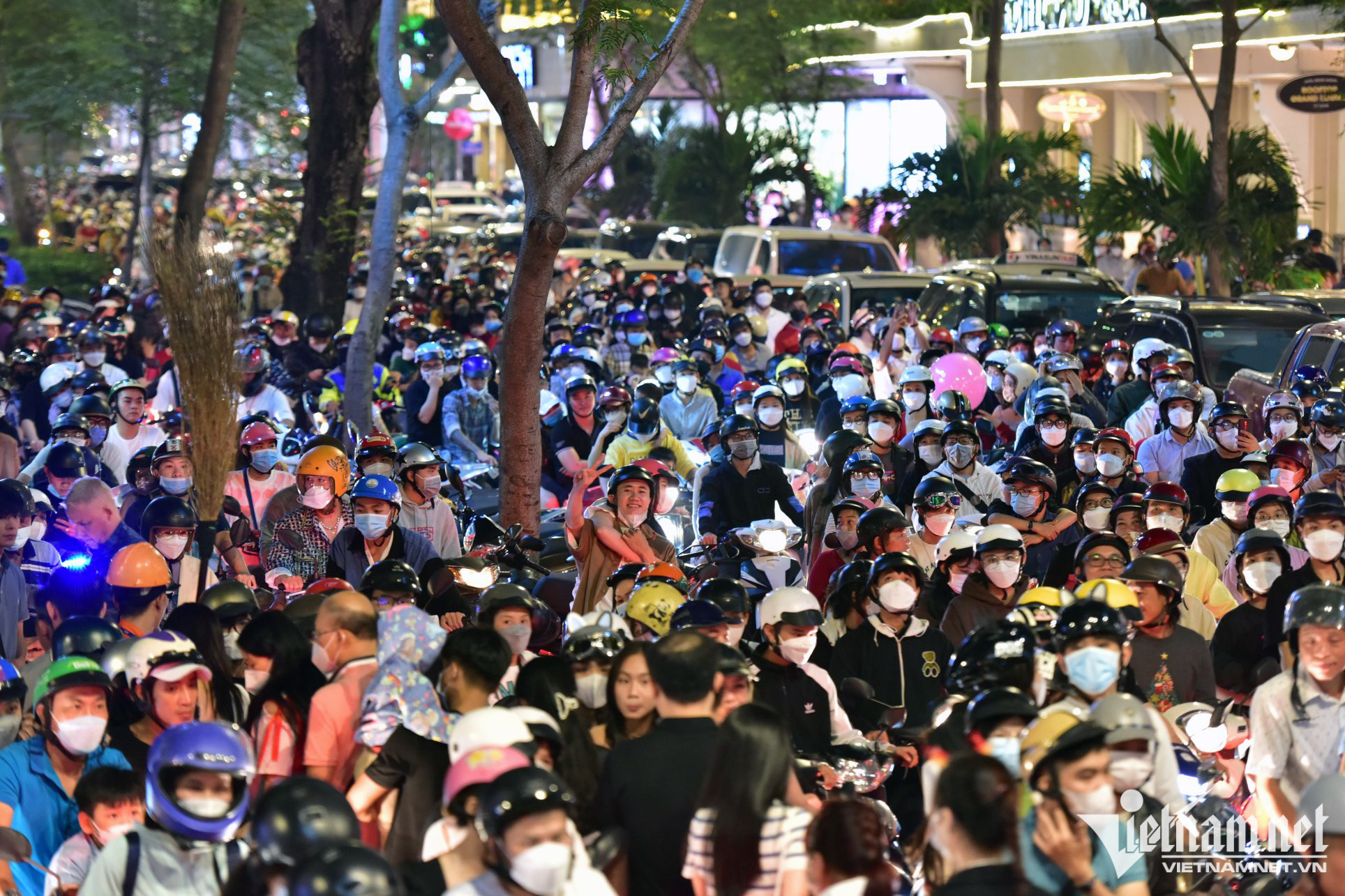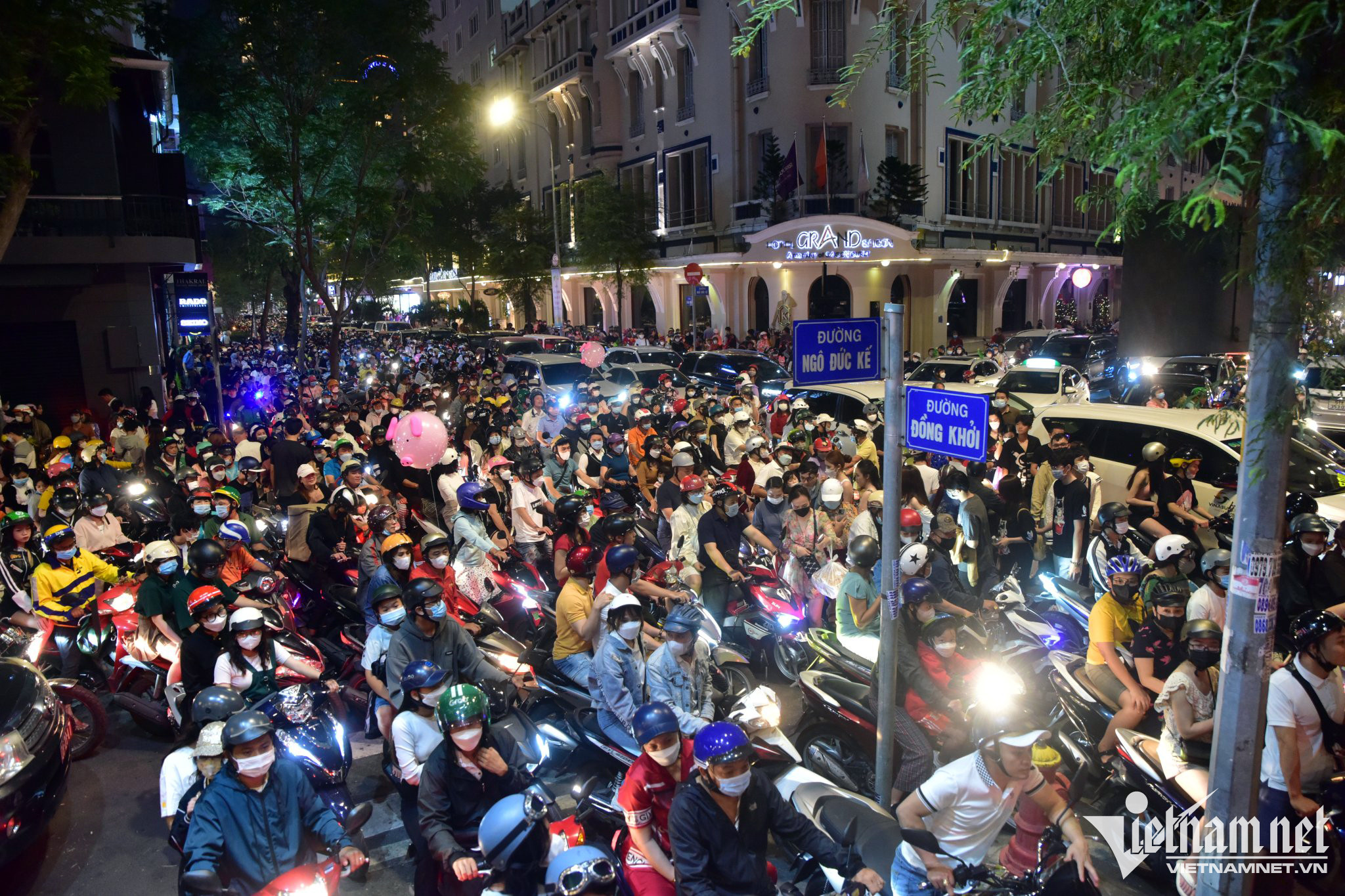 Ngã tư Đồng Khởi - Ngô Đức Kế luôn là điểm đen ùn tắc giao thông mỗi dịp lễ, Tết ở TP.HCM. Tối 24/12, xung quanh khu vực này ùn tắc nghiêm trọng do lượng người đổ về trung tâm thành phố quá lớn.
