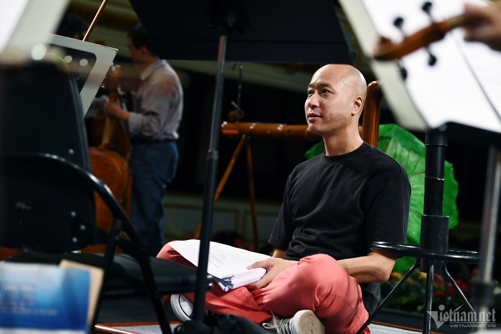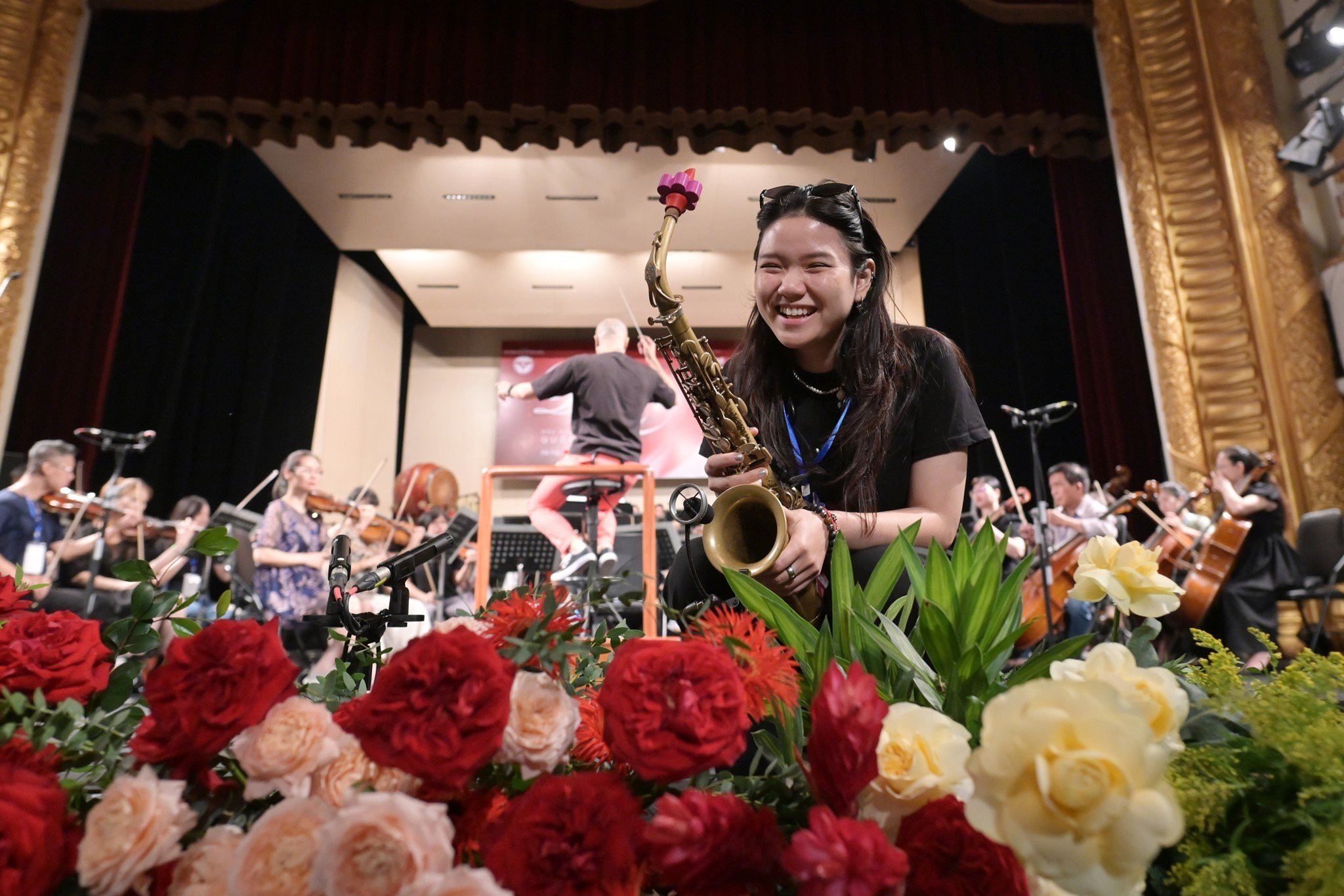 Hòa nhạc Quốc gia 'Điều còn mãi' 2023 diễn ra vào 2h chiều nay tại Nhà hát Lớn Hà Nội. Sáng 2/9, tất cả các nghệ sĩ đã có mặt đông đủ để tham gia chương trình tổng duyệt trước buổi diễn chính thức. MC Minh Hằng của VTV lần đầu đảm nhiệm vai trò dẫn dắt chương trình năm nay. Ảnh: Hoàng HàNhạc trưởng Đồng Quang Vinh cũng lần đầu cầm đũa chỉ huy 'Điều còn mãi'. Nhạc trưởng trẻ tuổi mặc áo pull trẻ trung, đi giày thể thao đến buổi tổng duyệt. Anh cực sung sức và nhiều năng lượng trên sân khấu sáng 2/9. Ảnh: Hoàng HàAnh trao đổi với NSƯT Trịnh Tùng Linh - Giám đốc Dàn nhạc Giao hưởng Việt Nam. Ảnh: Hoàng HàNhạc trưởng Đồng Quang Vinh ngồi bệt trên sân khấu Nhà hát Lớn trong lúc chờ đợi tổng duyệt. Ảnh: Hoàng HàTrong khi đó, ở dưới khán phòng, nhạc sĩ Trần Mạnh Hùng - Giám đốc âm nhạc của Hòa nhạc Quốc gia Điều còn mãi trao đổi với ca sĩ Phạm Khánh Ngọc trước khi tổng duyệt. Với 'Điều còn mãi' 2023, nhạc sĩ Trần Mạnh Hùng không chỉ biên tập mà còn chuyển soạn, hòa âm và phối khí cho toàn bộ các tác phẩm chơi trong 'Điều còn mãi'. Ảnh: Hoàng HàTổng biên tập Báo VietNamNet Nguyễn Văn Bá và Chủ tịch IB Group - ông Nguyễn Thùy Dương, bám sát tiến độ và theo dõi chất lượng buổi tổng duyệt trước khi chính thức chạy chương trình. Ảnh: Phạm Hải Đỗ Tố Hoa với ca khúc 'Bóng cây Kơ Nia' của Phan Huỳnh Điểu. Ảnh: Thạch ThảoĐỗ Tố Hoa còn thể hiện bài 'Trăng sáng đôi miền' với ca sĩ Đào Mác ở Điều còn mãi năm nay. Ảnh: Phạm HảiKhông phải lần đầu biểu diễn trên sân khấu 'Điều còn mãi' nhưng ca sĩ Phạm Thu Hà vẫn hồi hộp, háo hức khi đứng trong cánh gà chờ đến tiết mục của mình. Ảnh: Thạch Thảo Phạm Thu Hà cùng các ca sĩ NSƯT Đăng Dương, Đỗ Tố Hoa, Phạm Khánh Ngọc, Tùng Dương, Đào Mác sẽ cùng hòa giọng trong ca khúc 'Tổ quốc yêu thương' của Hồ Bắc. Ảnh: Thạch ThảoDù chỉ là tổng duyệt nhưng Phạm Thu Hà vẫn hát rất nghiêm túc, chuẩn bị trang phục chỉn chu, bắt mắt. Ảnh: Thạch ThảoCa nghệ sĩ Phạm Thu Hà, Đào Mác và Phạm Khánh Ngọc lưu lại bức ảnh kỷ niệm tại sự kiện. Ảnh: Phạm HảiDưới hàng ghế khán giả, NSƯT Đăng Dương kiên nhẫn chờ đợi đến tiết mục của mình. Ảnh: Hoàng HàDù đã nhiều lần đứng trên sân khấu 'Điều còn mãi' nhưng NSƯT Đăng Dương vẫn luôn giữ cảm xúc tươi mới trong mỗi tiết mục anh thể hiện. Năm nay NSƯT Đăng Dương sẽ hát bài 'Áo mùa đông' và tiết mục kết thúc 'Tổ quốc yêu thương'. Ảnh: Phạm Hải Giọng hát Tùng Dương như thường lệ, vẫn tiếp tục là một trong những điểm đáng chờ đợi nhất của 'Điều còn mãi'. Ảnh: Phạm HảiNSƯT Lệ Giang tổng duyệt tiết mục độc tấu đàn bầu. Ảnh: Phạm HảiNSƯT Lệ Giang và Phạm Khánh Ngọc tươi cười trên sân khấu. Ảnh: Thạch ThảoNghệ sĩ saxophone An Trần - con gái nghệ sĩ Trần Mạnh Tuấn, lần đầu biểu diễn ở 'Điều còn mãi'. Nhạc trưởng Đồng Quang Vinh hào hứng theo dõi phần trình diễn tác phẩm 'Mẹ yêu con' (nhạc sĩ Nguyễn Văn Tý) của An Trần. Ảnh: Thạch ThảoAn Trần là nghệ sĩ trẻ tuổi nhất tham gia 'Điều còn mãi' năm nay. Nghệ sĩ Trần Mạnh Tuấn đã ra Hà Nội để xem con gái biểu diễn chiều nay. Ảnh: Thạch ThảoCác chàng trai của nhóm Oplus với tiết mục 'My Kool Việt Nam' do Thanh Bùi sáng tác. Oplus thể hiện ca khúc này với Dàn nhạc Giao hưởng Việt Nam và Hợp xướng Kosmos Opera. Ảnh: Hoàng HàCác thành viên của Hợp xướng Kosmos Opera hào hứng với phần tổng duyệt. Ảnh: Hoàng HàTất cả các nghệ sĩ tham gia hoà nhạc đều tập luyện chăm chỉ, hào hứng để chuẩn bị cho một chương trình chất lượng ra mắt khán giả. Ảnh: Phạm HảiCác nghệ sĩ của Dàn nhạc Giao hưởng Việt Nam trên sân khấu 'Điều còn mãi' sáng nay. Ảnh: Thạch ThảoDàn nhạc Giao hưởng Việt Nam tổng duyệt 'Quốc ca Việt Nam' của Văn Cao dưới sự chỉ huy của Đồng Quang Vinh. Đã thành thông lệ hằng năm, 'Điều còn mãi' luôn mở màn với 'Quốc ca Việt Nam' và lễ chào cờ bên trong Nhà hát Lớn với hình ảnh cờ đỏ sao vàng. Ảnh: Thạch ThảoCác nghệ sĩ tranh thủ selfie trong phút giải lao hiếm hoi. Ảnh: Hoàng HàHòa nhạc Quốc gia 'Điều còn mãi' 2023 do Báo VietNamNet cùng Công ty IBgroup tổ chức sẽ được tường thuật trực tiếp trên VTV1 từ 14h ngày 2/9. Ảnh: Thạch Thảo